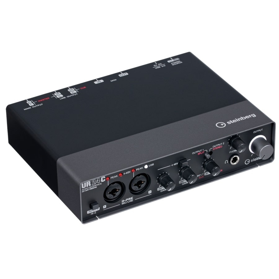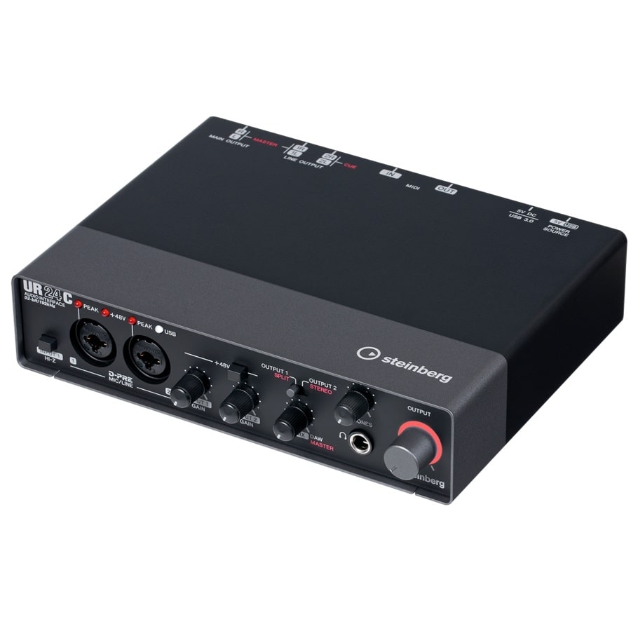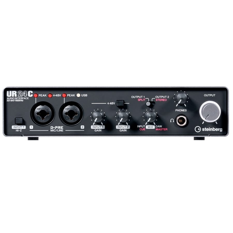 De UR24C is een goede interface van Steinberg. Steinberg is een Duits bedrijf wat hoogwaardige audioproducten produceert. Ze staan voornamelijk bekend om hun opnameprogramma: Cubase. Ze maken echter ook hoge kwaliteit interfaces. De UR24C is een compacte en handige interface. Het apparaatje heeft twee microfoonaansluitingen en twee instrumentaansluitingen, hoewel de microfoonaansluitingen worden gedeeld met de instrumentaansluitingen, waardoor u maar een maximaal van twee inputs tegelijkertijd kan gebruiken. Beide inputs hebben hun eigen volumeknop en voor input 1 kunt u voor HI-Z kiezen. De interface heeft een stereo output en een MIDI-in en -out. U kunt ook uw audio beluisteren met een hoofdtelefoon. Bij de UR24C heeft u aparte volumeregelingen voor de hoofdtelefoon en de stereo output. Bovendien heeft de interface twee verschillende stereo line outputs. U kunt de UR24C op uw computer aansluiten via de meegeleverde USB-kabel. Als uw apparaat niet genoeg fantoomvoeding biedt, kunt u ook een onafhankelijke voedingsbron op uw interface aansluiten. Bovendien komt de interface inclusief Cubase AI en Cubasis LE. Cubase AI is een simpelere versie van de beroemde Cubase Pro en Cubasis LE is specifiek voor het opnemen en mixen op uw IPhone of IPad. Andere inclusieve programma’s zijn dspMixFx en FX Basic Suite. De UR24C produceert hoge kwaliteit audio, met een 32-bit/192 kHz resolutie, en is veelzijdig qua gebruik. Zodoende kunt u muziek opnemen, maar is de interface ook zeer geschikt als audio interface voor visuele media. Dit maakt de interface ook populair onder content creators en podcasters.