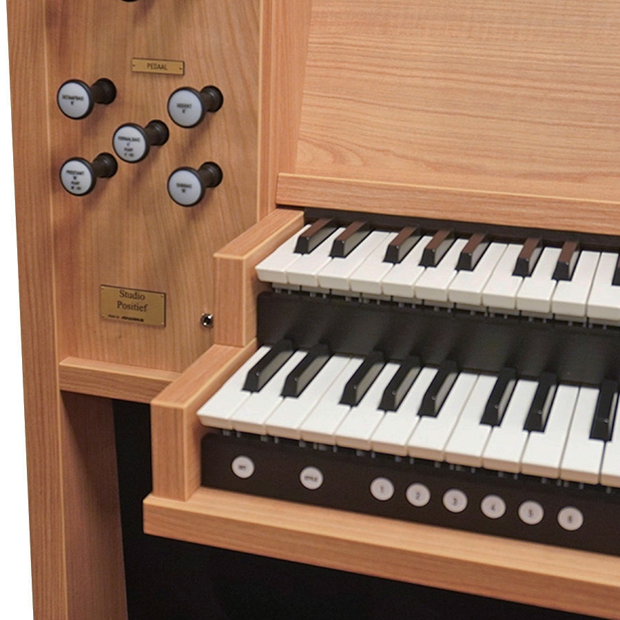 De Studio Positief heeft een breed scala aan registers, waarbij nieuw de prachtige solostemmen zoals trompet en panfluit zijn. Deze solostemmen kunnen afzonderlijk of gecombineerd met andere registers worden gebruikt, afhankelijk van uw muzikale doelen en smaak en zijn bedoeld om extra expressiviteit en variatie toe te voegen aan uw orgelspel.