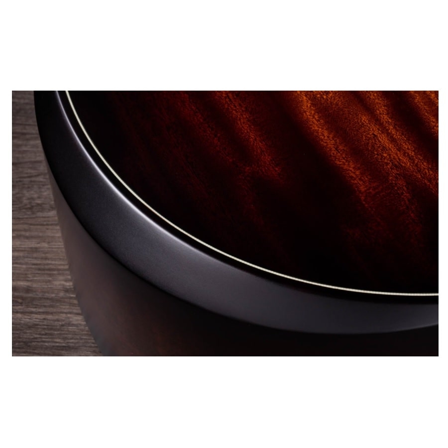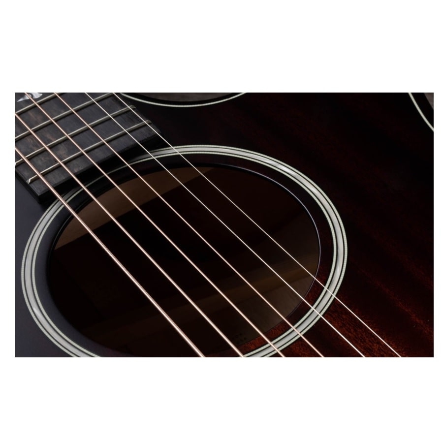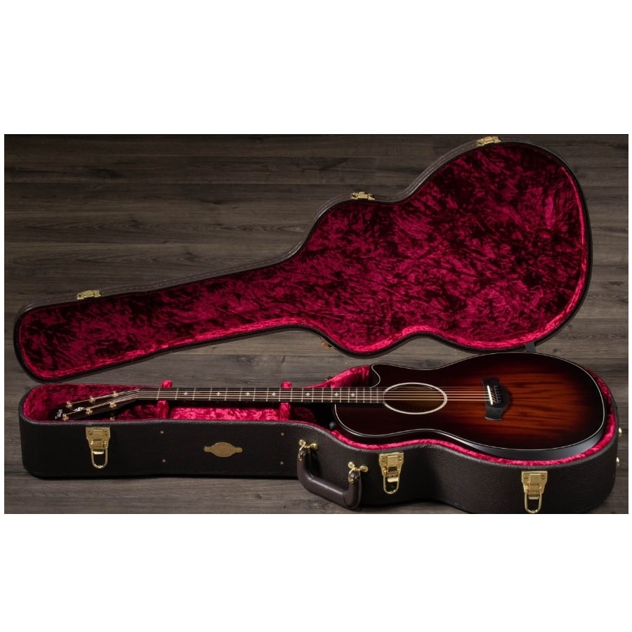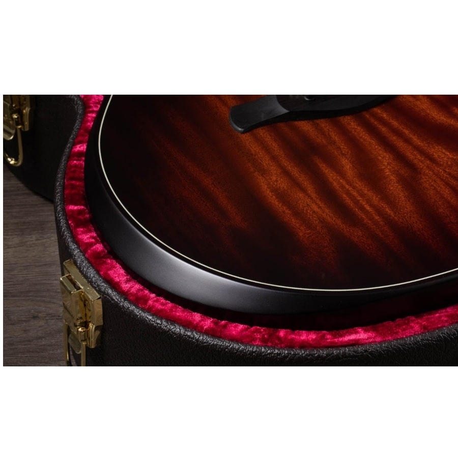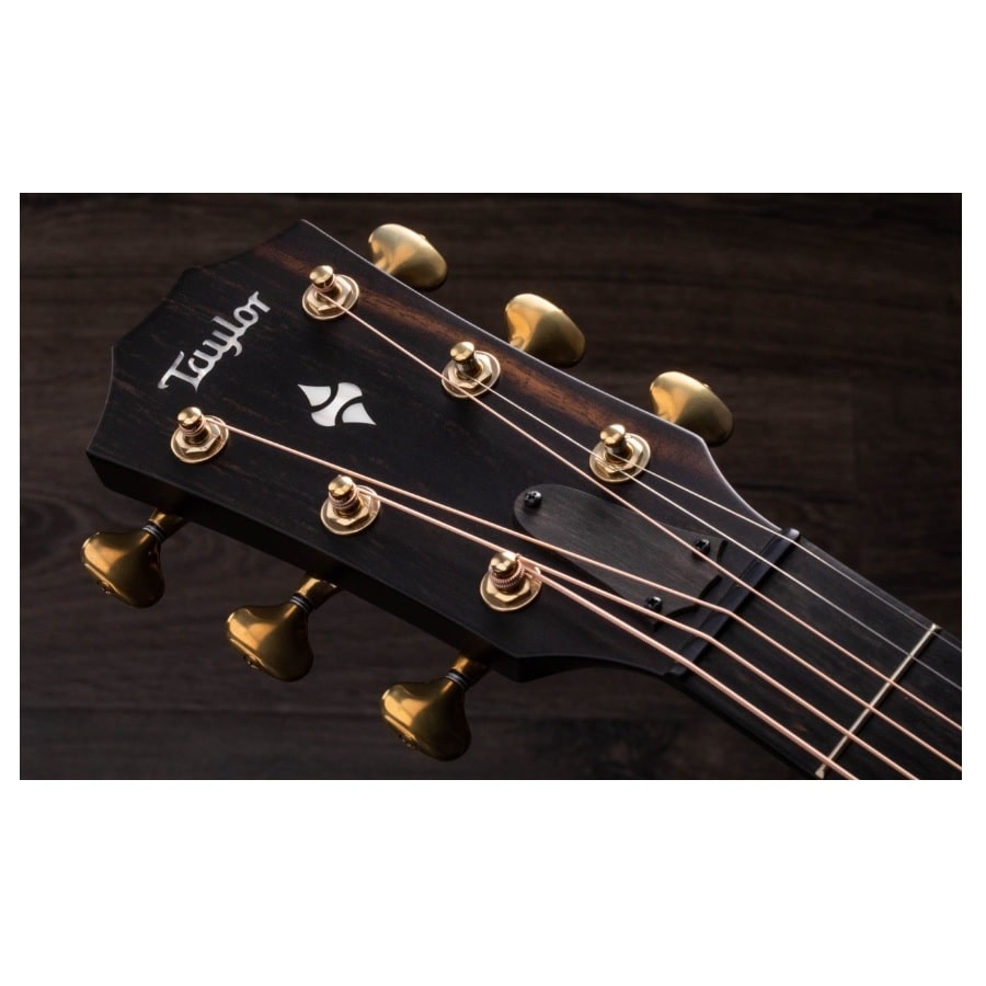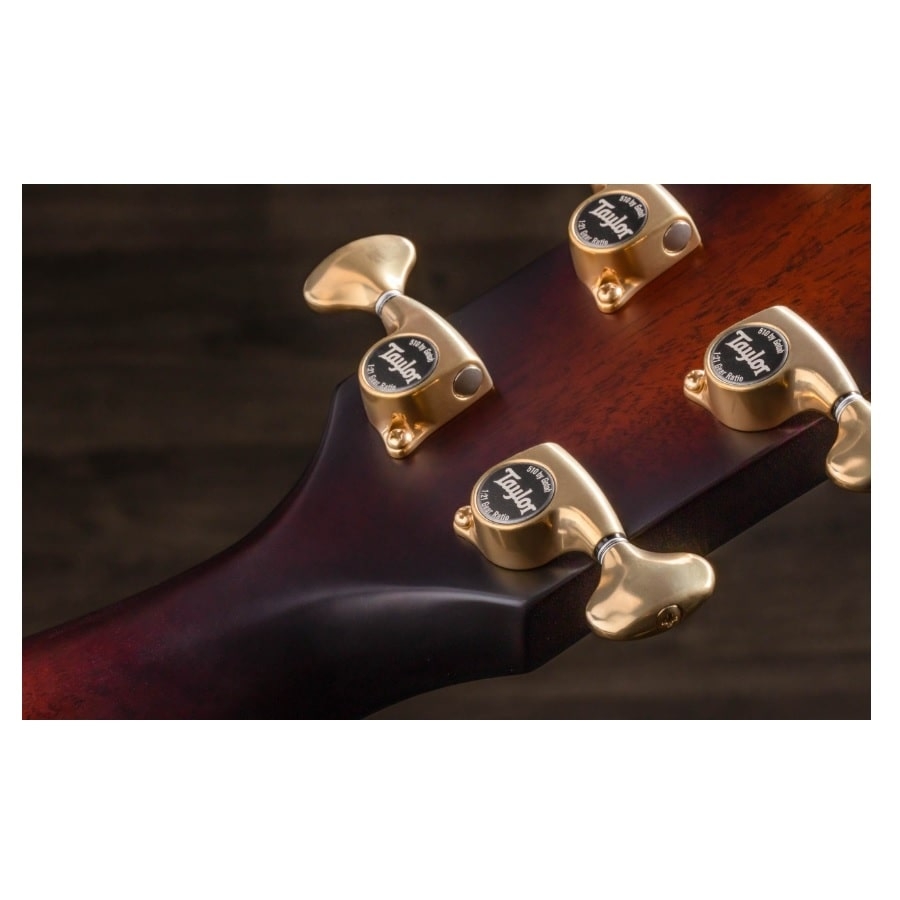 De klankkast heeft een massieve mahoniehouten bovenblad en een massieve urban essenhouten zij- en achterkant. Deze combinatie zorgt voor een gebalanceerd en helder geluid. De gitaar heeft een mahoniehouten hals en een ebbenhouten toets. De gitaar heeft een Grand Auditorium body. Deze vorm was in Taylor ontworpen in 1994 en is één van de populairste vormen van Taylor. De Grand Auditorium is een slag kleiner dan een Dreadnought maar een slag groter dan de Grand Concert. De gitaar is ook de veelzijdigste van de drie, want Dreadnoughts zijn voornamelijk geschikt voor slaggitaar en Grand Concerts voor tokkelen. De Grand Auditorium is specifiek ontworpen om deze te combineren. Verder bevat de gitaar ES2 elektronica zodat deze mooi versterkt kan worden en de gitaar wordt geleverd met een koffer.