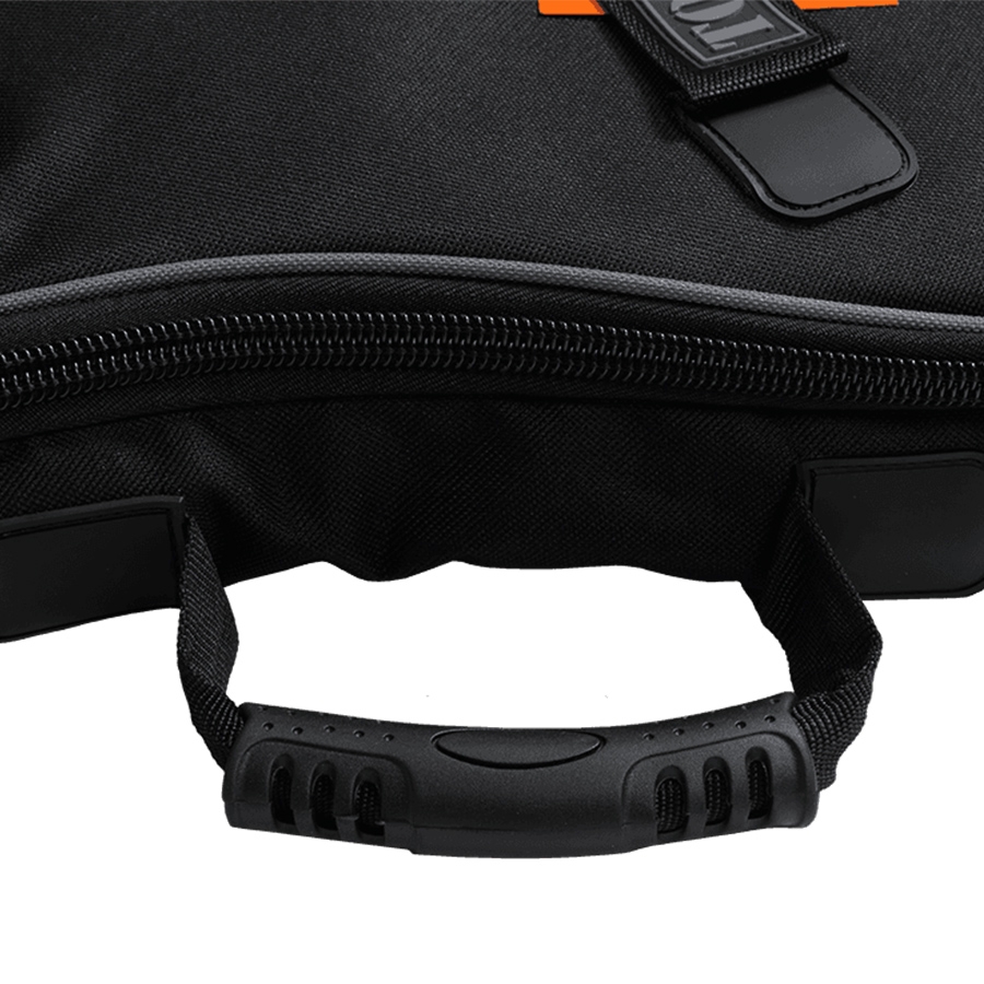 De Tobago GB45F is een stevige gitaarhoes voor westerngitaren. De GB45 serie is de hoogste kwaliteit serie gitaarhoezen van het bekende merk Tobago, en word gemaakt van de beste materialen. Dankzij de 20mm dikke voering en waterafstotende rits is dit een ideale tas om uw gitaar in te vervoeren. Daarnaast zijn er extra vakjes voor bladmuziek, capo's, kabels en meer! Kortom: Zoekt u een stevige gitaarhoes, zonder de hoofdprijs te betalen? Dan is de Tobago GB45F een uitstekende keuze!