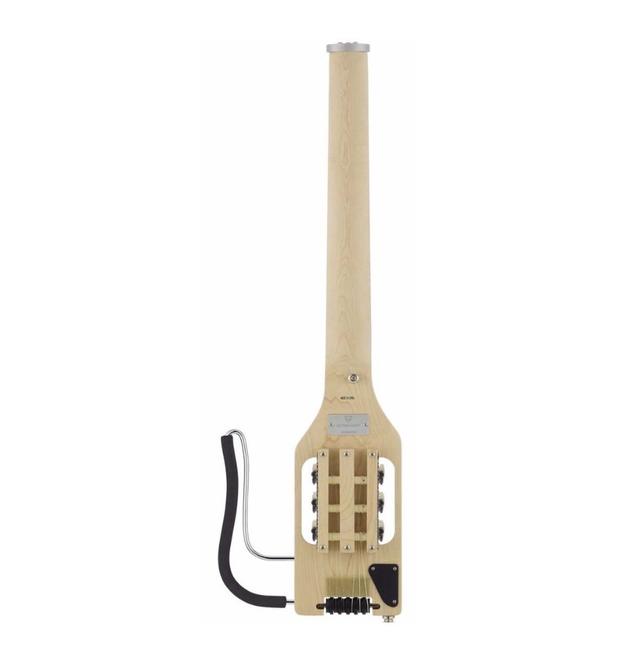 De Ultra-Light gitaar is een compacte reisgitaar van het merk Traveler. Deze gitaar weegt maar rond een kilo, en is maar 75 centimeter lang. Hierdoor is het de ideale gitaar om mee op reis te nemen, omdat je deze gitaar mee kan nemen als handbagage in een vliegtuig. De lengte hebben ze kunnen innemen door het kopstuk weg te nemen en de klankkast weg te halen. De stemknoppen zitten bij dit model in de body. Daarnaast is de gitaar te versterken. De body en de hals zijn gemaakt van esdoorn, wat een mooie klank produceert. Kortom, een unieke gitaar voor een geweldige prijs!