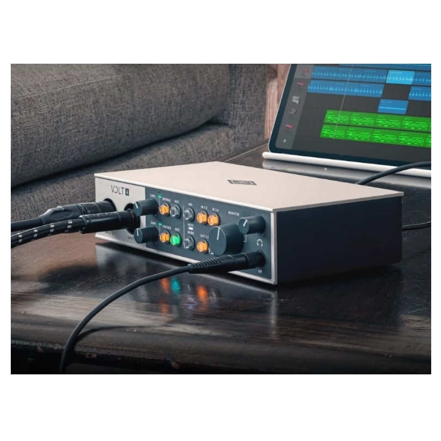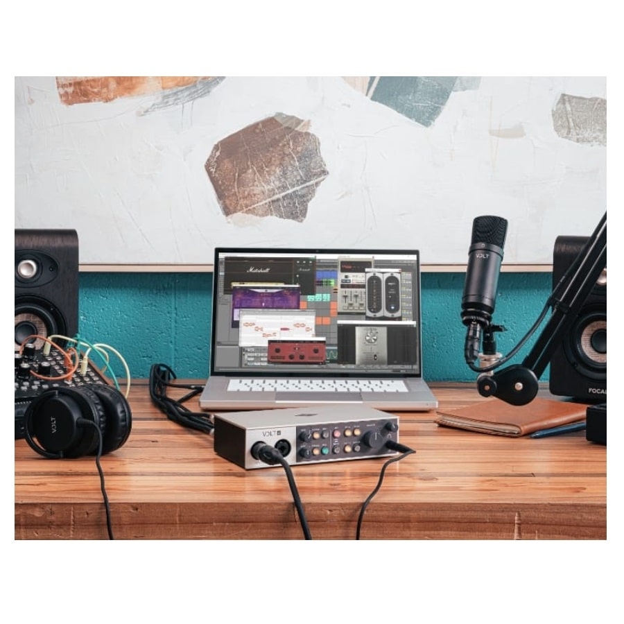 De Volt 4 komt inclusief een nauwkeurig samengesteld pakket aan software, inclusief de Marshall Plexi Classic Amp Bundle, de Ableton Live 11 Lite, de Melodyne Essential, de Ampeg SVT-VR Classic Bass Bundle, de LX480 Essentials, de Virtual Drummer DEEP, de Virtual Bassist DANDY en de LABS by Spitfire Audio.