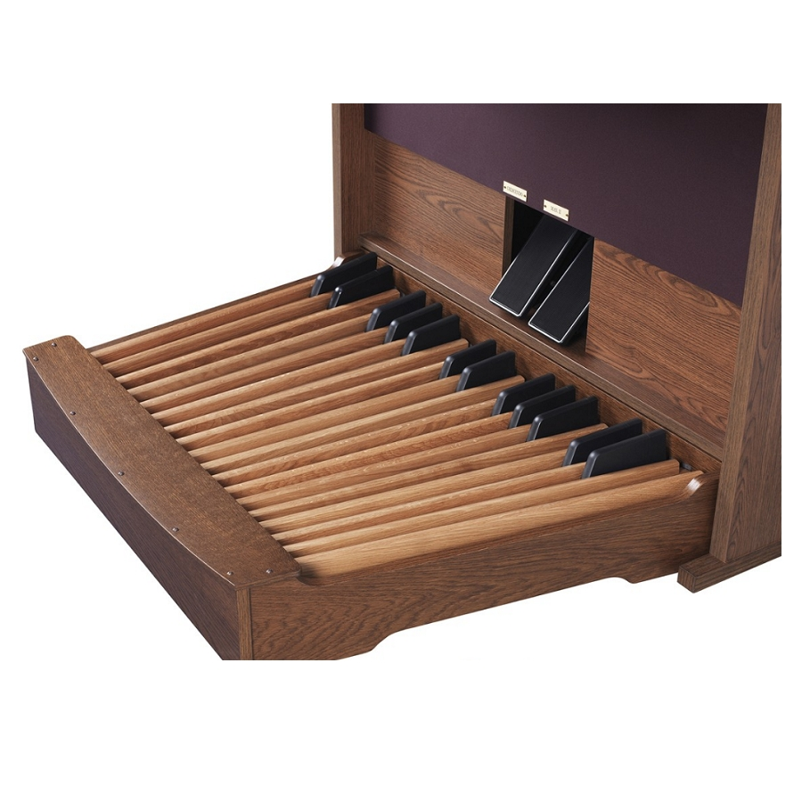 Zoals u van Italianen gewend bent, is het meubel zeer netjes en stijlvol. De massieve kast, een fraaie lessenaar, twee houten expressiepedalen en een bijpassende bank zorgen voor een elegante uitstraling. Voor degene die meer houdt van een klassiekere afwerking heeft Viscount met de Chorum 50 ook een variant beschikbaar met een rolluik.