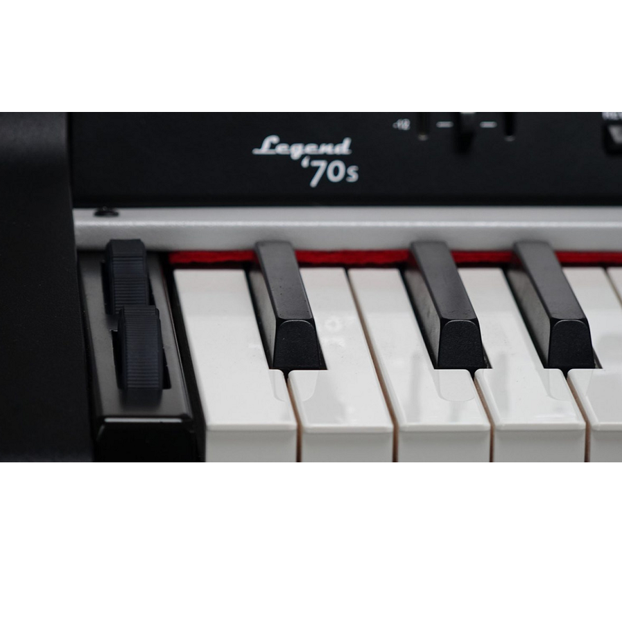 Van de Legend ’70 zijn drie verschillende modellen beschikbaar. Deze ’70 Artist W is de droom van de echte pianist en bestaat uit een klavier met 88 gewogen toetsen met een houten kern. Als iets voordeligere variant is de ’70 Artist beschikbaar, tevens 88 toetsen maar geen houten kern. Als derde model is ook nog de ‘70s Compact op de markt, die bestaat uit een klavier met 73 toetsen.
