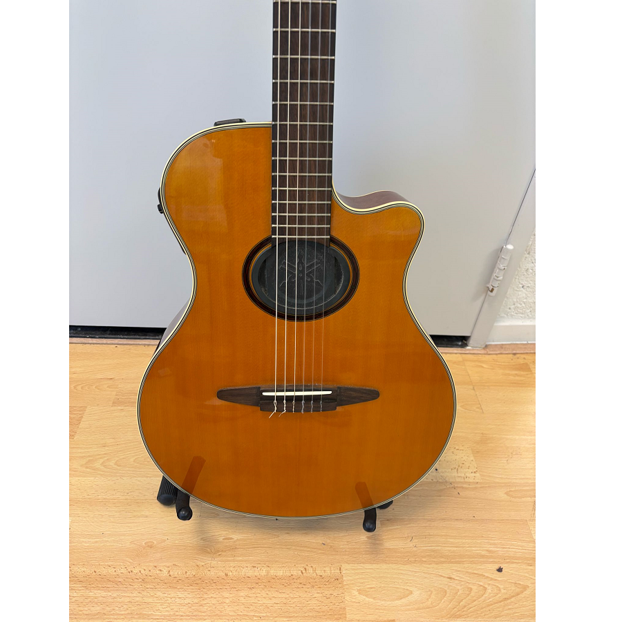 De Yamaha APX5NA is een hoogwaardige elektro-akoestische klassieke gitaar, ideaal voor zowel podium als studio. Met zijn slanke body, narrow neck en cutaway-design biedt deze gitaar ultiem speelcomfort, vooral voor gitaristen die overstappen van een westerngitaar. De natuurhouten klank wordt versterkt door het ingebouwde System 45 piezo-pickupsysteem, waardoor je een warme, gebalanceerde sound krijgt, zowel akoestisch als versterkt. Een perfecte keuze voor veelzijdige muzikanten die klassieke klanken combineren met moderne speelbaarheid!
