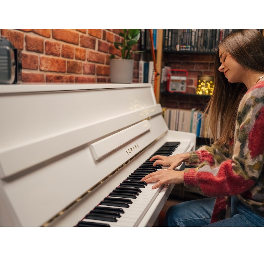 De Yamaha B1PW is de introductiepiano van een zeer gerenommeerde pianobouwer. Met ruim 100 jaar aan ervaring heeft Yamaha hun waarde alom bewezen. Nu hebben zij zonder enige concessies te doen aan klank en kwaliteit de relatief betaalbare B1 op de markt gebracht. De kwaliteit en betrouwbaarheid van Yamaha piano’s wordt hiermee voor een grote groep pianisten toegankelijk. Deze 109 centimeter hoge piano heeft een mooie hoogglans witte afwerking en is naast een erg goede piano ook nog eens een ware toevoeging aan uw interieur.