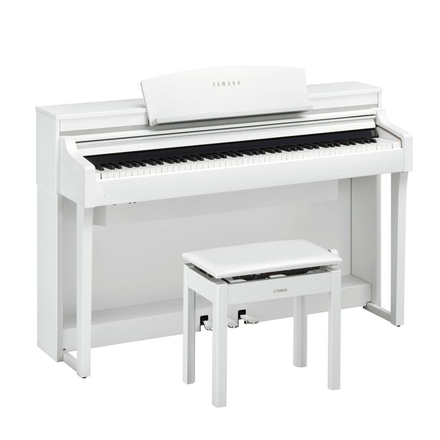 De CSP-170WH is een slimme digitale piano van Yamaha. Dit is een slimme piano omdat het met deze piano mogelijk is om andere apparaten op de piano aan te sluiten. Bovendien is het mogelijk om met de Clavinova Smart Pianist-app muziek die u wilt spelen om te zetten in bladmuziek. Dit wordt dan aangegeven met volglichten. Deze lichtjes verschijnen boven aan uw toetsen, om te weten welke u moet aanslaan, de lichtjes lopen af zodat u weet dat deze eraan komen. Zodoende is het erg makkelijk om zelf de piano te leren spelen. Het is binnen de app ook mogelijk om de tempo van de liedjes aan te passen en de liedjes te transponeren.
