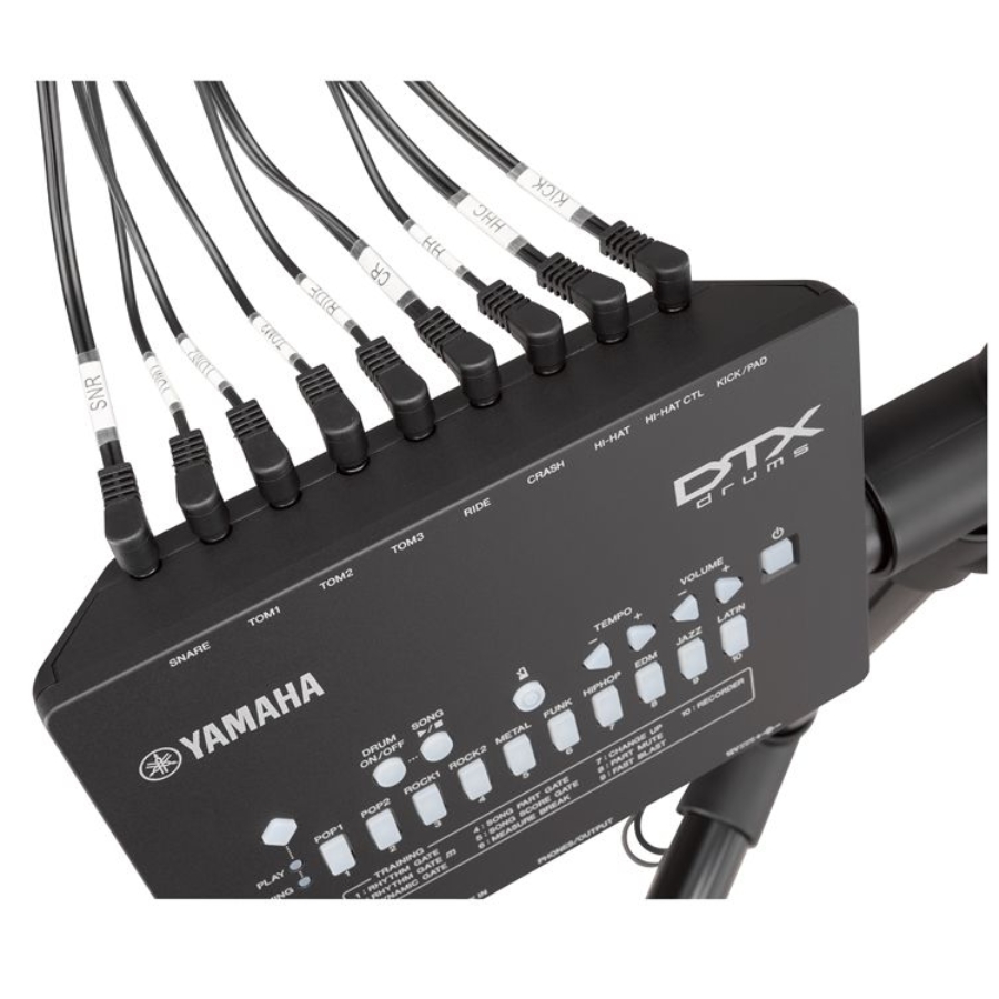 De DTX402 beschikt over een traditionele drumconfiguratie bestaand uit een snaredrum, drie toms drie bekkens, een bassdrum en een hihatcontroller. Heeft u nog iets meer budget beschikbaar? Bekijk dan ook eens de DTX-432 of de DTX-452. Deze set beschikt over een echt basdrumpedaal dat fysiek tegen de trigger aanslaat, dit betekent nog meer beleving en drumgevoel!