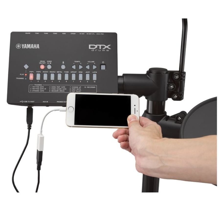Yamaha heeft een speciale DTX-app uitgebracht, waarmee u de DTX-402 interactief kunt gebruiken in combinatie met een smartphone of tablet. Met de app kunt u op een leuke en gemakkelijke manier aan de slag met uw elektronische drumstel met zowel iOS als Android toestellen. Zo kunt u met de Challenge Mode-functie meespelen met ingebouwde trainingstracks. Als u de laatste fase voltooid, ontvangt u van Yamaha een drummerscertificaat. Maar er is meer mogelijk! U kunt namelijk ook drumkits aanpassen met de Editor-functie en ook is het mogelijk om eenvoudig muziek te delen met uw vrienden en sociale netwerken middels de Rec’n’Share app (alleen iOS).