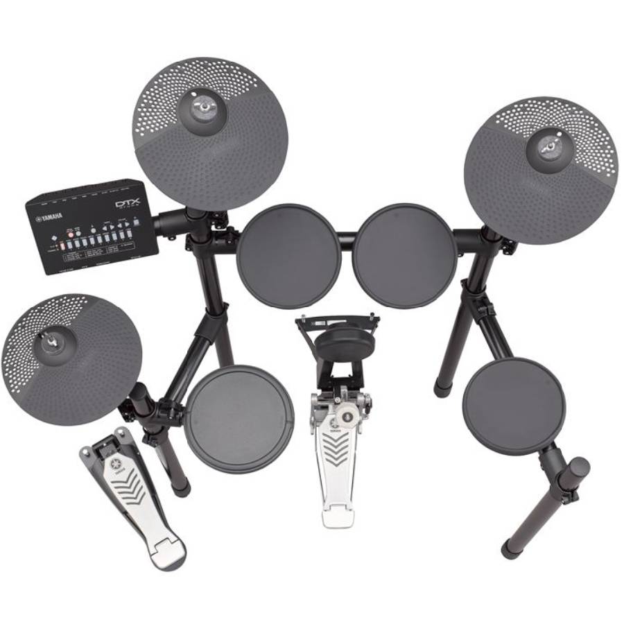 De DTX432 beschikt over een traditionele drumconfiguratie bestaand uit een snaredrum, drie toms drie bekkens, een bassdrum en een hihatcontroller. Zoals eerder beschreven is de setup uitgevoerd met een losse basdrumpad en basdrumpedaal, wat zorgt voor een realistisch speelcomfort. Het meegeleverde degelijke basdrumpedaal is favoriet bij vele professionele drummers. In de instap DTX-serie kunt u indien iets meer budget beschikbaar, ook nog kijken naar de DTX-452. Deze set beschikt over een betere snaredrum!