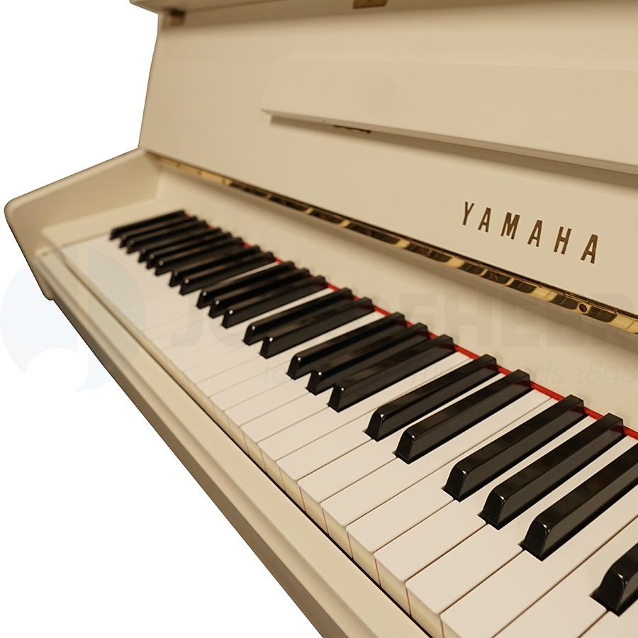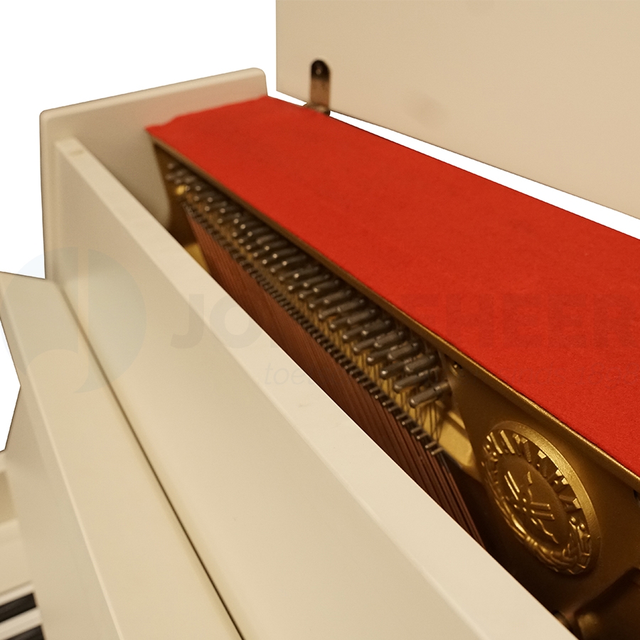 de Yamaha M5JR is de ultieme studiepiano die een aangename klank combineert met fijne speelaard. Yamaha staat bekend om hun transparante heldere klank, soepele speelaard en hoge mate van stemvastheid. Dit zijn eigenschappen die de piano’s uitermate populair maken. Het witte meubel met ene hoogte 104 centimeter verkeert in erg nette staat. Technisch is de piano volledig nagelopen door onze pianotechniek afdeling. Kwaliteit is gegarandeerd bij de Yamaha M5JR.