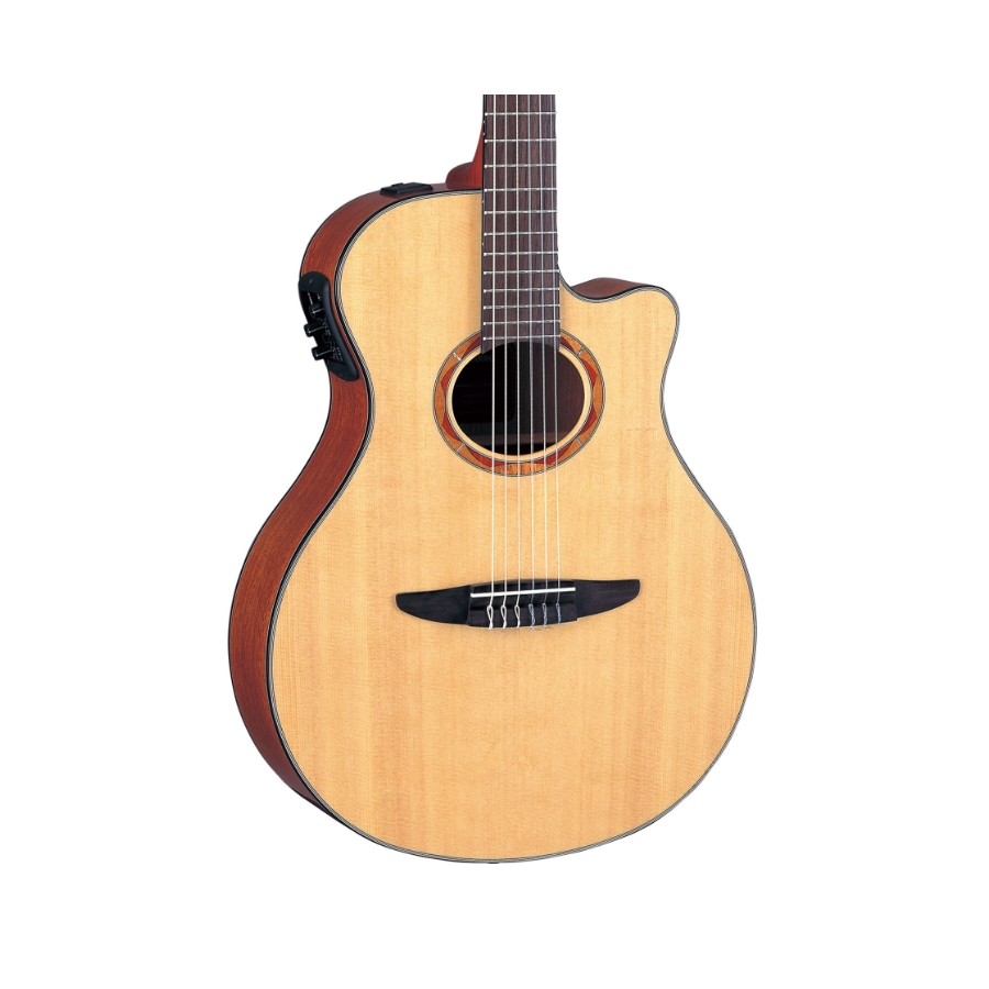 De Yamaha NTX700 is een opvallende verschijning in het assortiment klassieke gitaren. Waar vele klassieke gitaren traditioneel worden gebouwd, heeft dit model een aantal opvallende afwijkingen. De semi-akoestische gitaar heeft een dunnere body dan gebruikelijk. Puur akoestisch levert de gitaar hierdoor iets volume in, maar deze eigenschap maakt de gitaar erg geschikt voor op het podium of in de studio omdat de kans ‘rondzingen’ aanzienlijk verminderd.