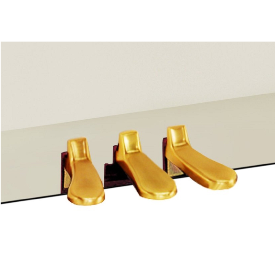Deze uitvoering betreft de Yamaha P116 in wit hoogglans kleur met messing hardware. Wij hebben dit model ook in ons assortiment in het wit hoogglans met chrome hardware, het zwart hoogglans met messing hardware en het zwart hoogglans met chrome hardware.