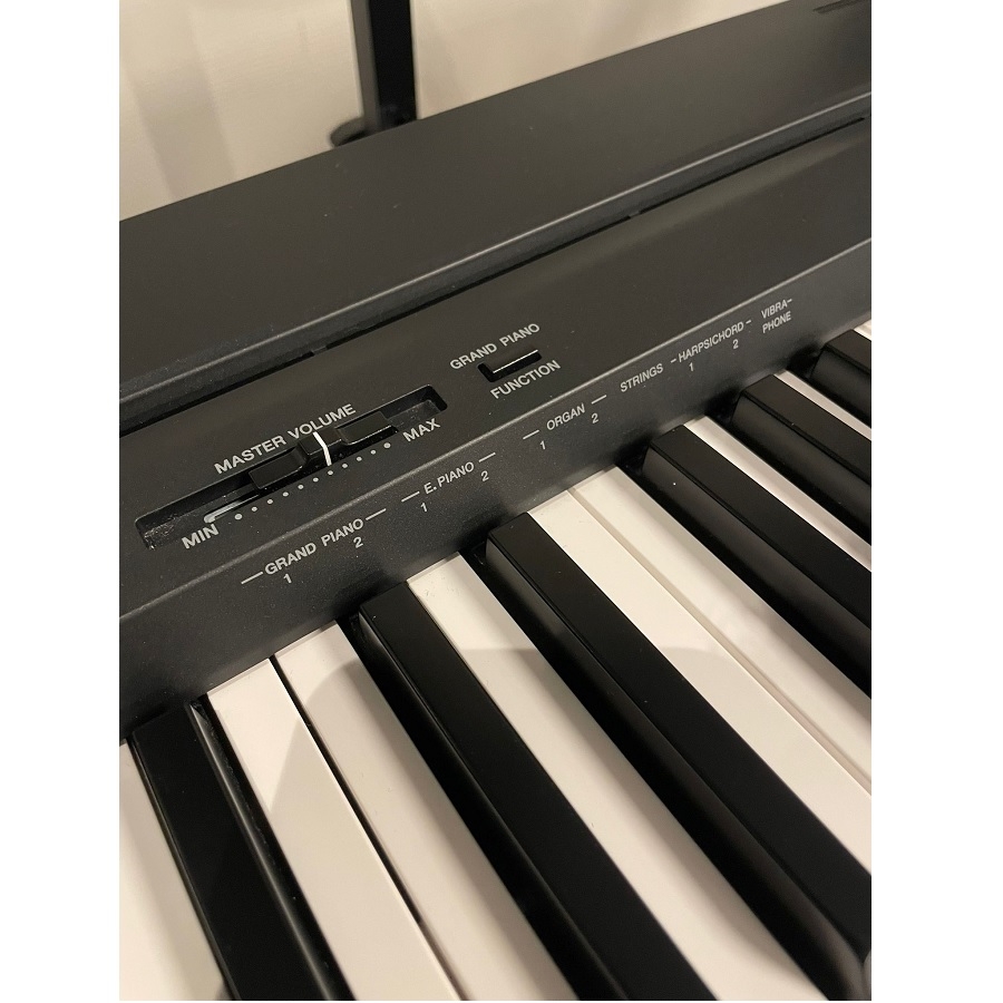 De Yamaha P45 is een erg gebruiksvriendelijke piano. De piano beschikt over één knop, waarmee diverse instellingen aangepast kunnen worden. Door het indrukken van deze knop in combinatie met het indrukken van een toets op het klavier, kunt u een instelling selecteren. Boven de toetsen staan de betreffende functies weergegeven, zoals verschillende klanken, demo’s of instellingen van het metronoom. In totaal beschikt de piano over tien verschillende geluiden, waaronder een aantal piano’s, maar ook orgelgeluiden en klanken van snaarinstrumenten.