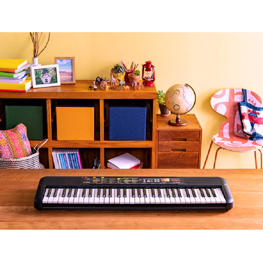 Met de nieuwe PSR-F52 heeft Yamaha een keyboard met 61 toetsen uitgebracht dat ideaal is voor de beginnende keyboardspeler. Dit keyboard zit boordevol met functies waardoor de eerste speelervaring verbeterd wordt. Een van deze functies is een metronoom, waardoor het voor beginnende toetsenisten makkelijker wordt om ritmes onder de knie te krijgen. Bovendien heeft dit instrument een uitstekende geluidskwaliteit, een goede gebruiksvriendelijkheid en een gratis digitaal liedboek dat volstaat met standaard muziek, lesvideo’s en een akkoordfunctie die kan helpen bij het spelen van akkoorden. Het keyboard is ideaal om mee te nemen aangezien hij te bespelen is zonder netstroom. Het is mogelijk om simpelweg 6 AA-batterijen te gebruiken, waardoor de meegeleverde netstroom adapter niet noodzakelijk is. Het compacte design zorgt er tevens voor dat de PSR-F52 ideaal is voor eenvoudig transport en opslag.
