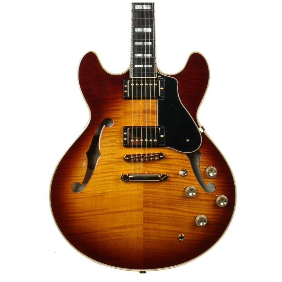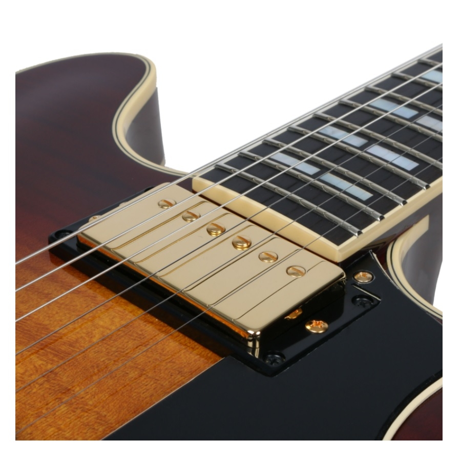 De SA2200 is een semi-hollow gitaar met een prachtige donkere sunburst kleur. De gitaar is dus een semi-hollow elektrische gitaar, wat betekent dat de gitaar beide een klankkast en elementen heeft. Dit is een apart systeem; eerst worden de trillingen van de snaren opgevangen in de klankkast, waar ze resoneren, daarna worden ze opgevangen door de elementen. Dit zorgt voor een uniek geluid, een mooi vol en helder geluid met geweldige sustain. De SA2200 heeft twee humbucker elementen, wat het geluid prachtig versterkt en ruis of storing voorkomt. De body is gemaakt van gelamineerd sycamore hout, wat voor een rijk en warm geluid zorgt. De body is dus ook gelamineerd, wat betekent dat deze enorm stevig is en in de perfecte staat blijft ongeacht het klimaat. Zodoende heeft de body ook geen onderhoud nodig, waardoor het de ideale gitaar is voor mensen die in hele vochtige, hele droge, of veranderlijke klimaten wonen. De hals is van mahoniehout gemaakt en de toets van ebbenhout, wat voor een fijne speelervaring zorgt. Kortom, een prachtige semi-hollow body gitaar op het gebied van klank en uiterlijk.
