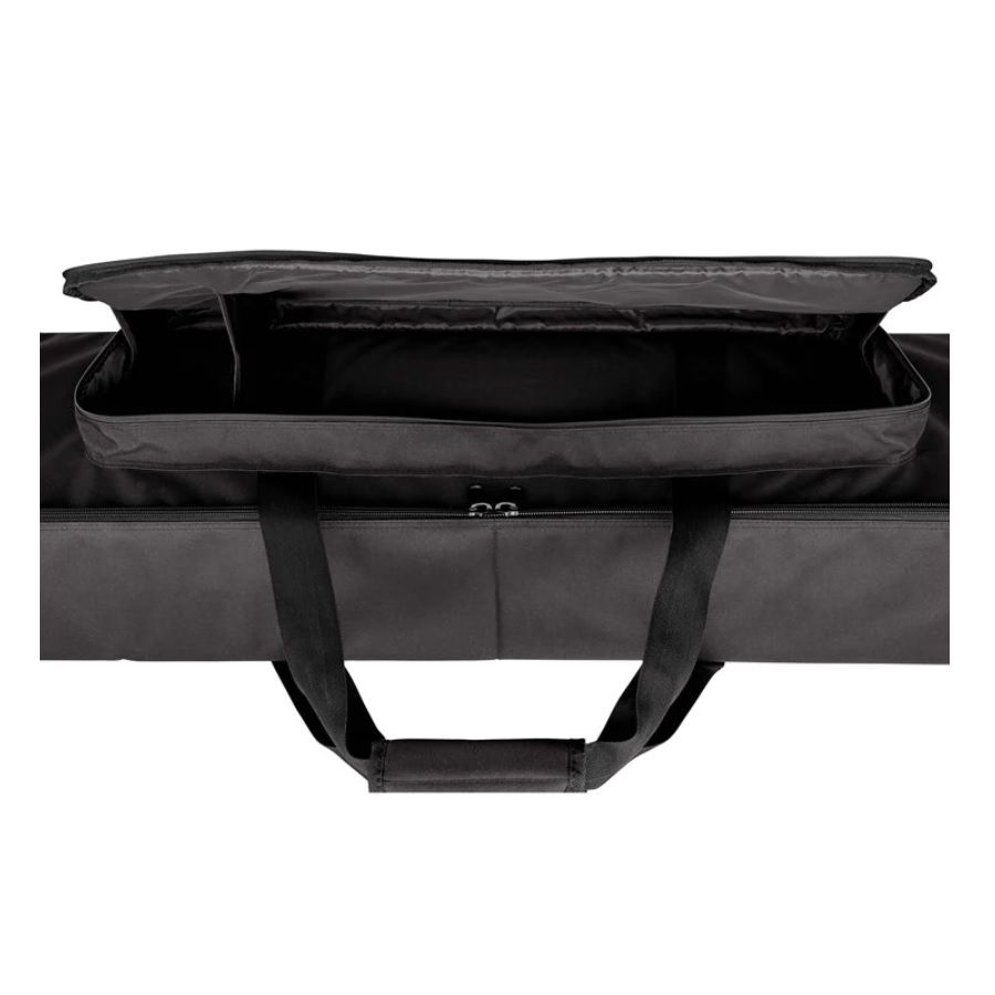 De SC-KB850 is een stevige draagtas voor de Yamaha P-125 digitale piano. Dit is erg handig, want de tas sluit dus precies aan op de P-125, zodat deze niet zal schuiven in de tas tijdens het vervoer, wat ook voor schade kan zorgen. Hoewel de tas bedoeld is voor de P-125, passen er ook andere piano’s in. Yamaha zegt dat de P-35, de P-45, de P-105 en de P-115 ook passen. Echter moet u hier dan wel rekening bij houden dat deze modellen niet naadloos met de tas aansluiten en er dus extra ruimte is. Het is ook mogelijk om piano’s van andere merken in de tas te vervoeren, als ze binnen de afmetingen (1.365 x 175 x 315 mm) vallen. De tas heeft vulling, zodat de kans minimaal is dat de piano schade oploopt. Daarnaast heeft de tas aan de voorkant ook een extra vak waarin u accessoires kunt opbergen. Kortom, de ideale tas voor de P-125!