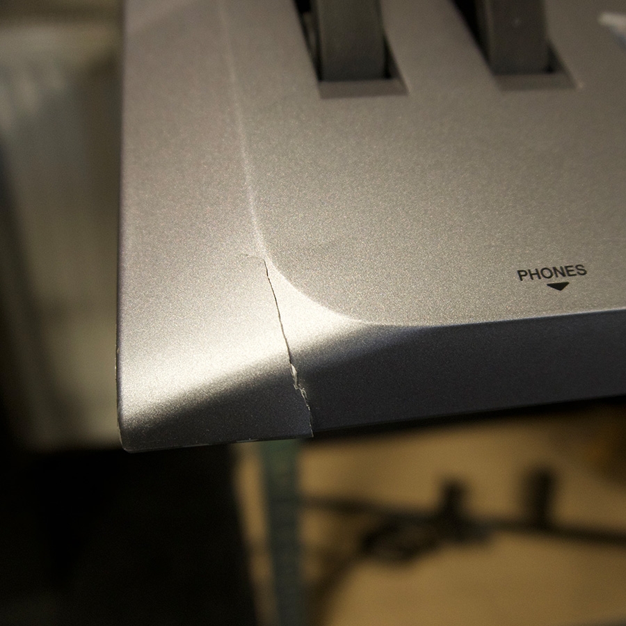 Yamaha Tyros 5-61 met schade aan de zijkanten. Schade is ontstaan met transport, zie foto's. Technisch helemaal in orde, nagelopen door monteur en met 12 maanden garantie.