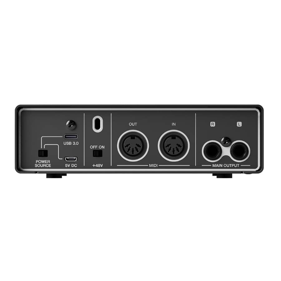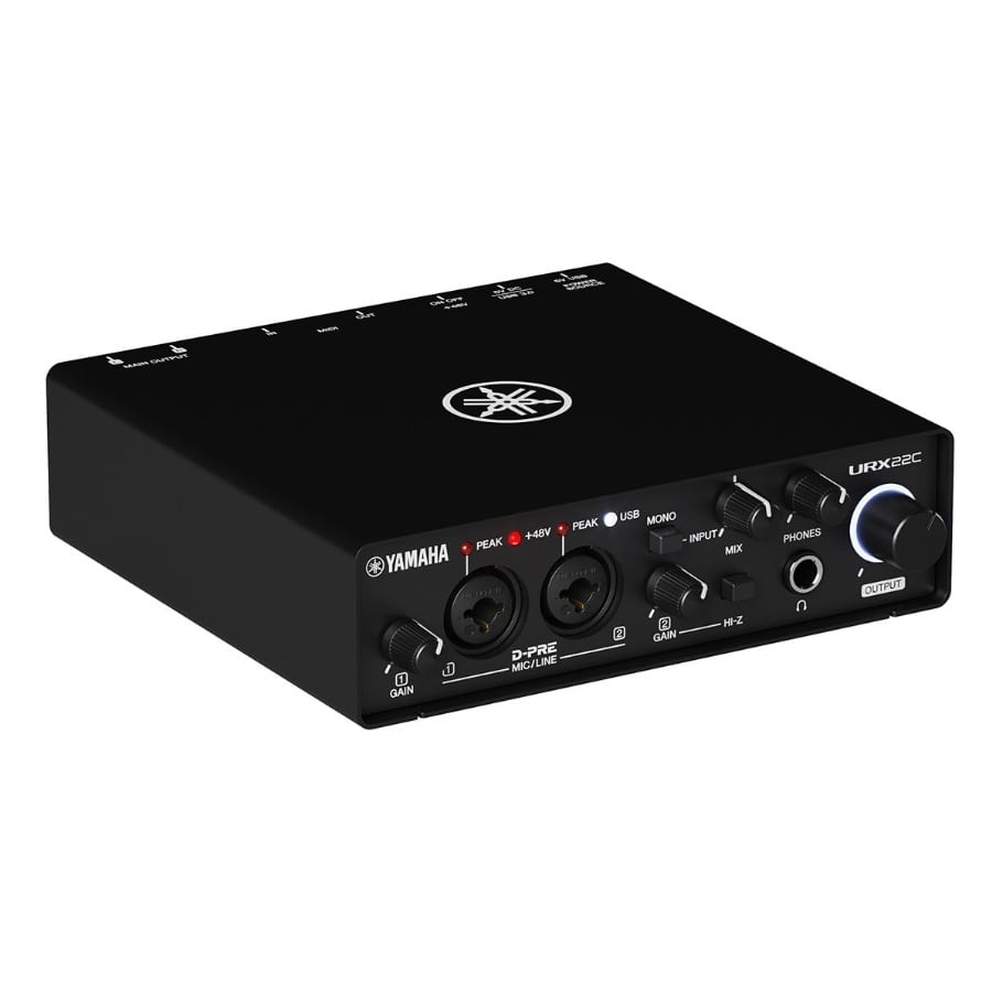 Een van de sterkste punten van de URX22C is zijn flexibiliteit in verbindingen. De interface beschikt over twee XLR/line combo-ingangen voor microfoons en andere instrumenten. De mic-ingang wordt versterkt door Yamaha's hoogwaardige mic preamp, die zorgt voor een transparante en rijke geluidsweergave, zelfs bij hogere volumes. De interface biedt daarnaast +48V fantoomvoeding, zodat u een condensatormicrofoon kunt gebruiken. Verder heeft het apparaat ook een MIDI-in en -out voor het gebruiken van MIDI-apparaten.