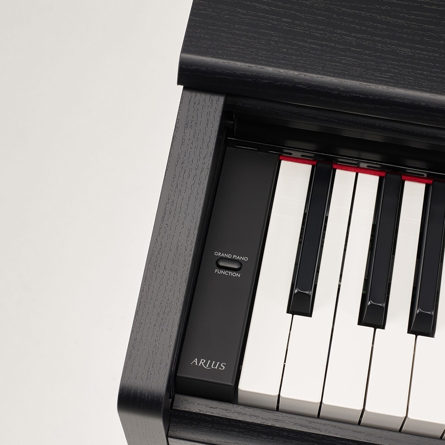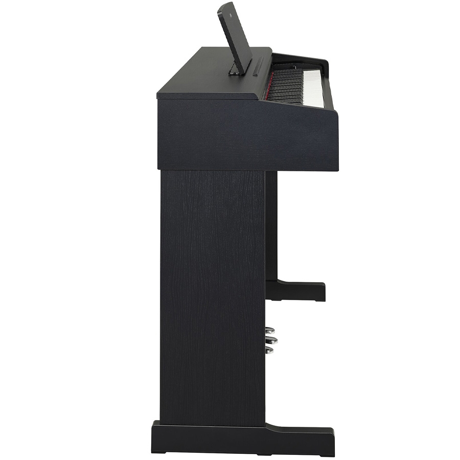 Als we kijken naar het design van de YDP-105, dan valt op hoe volwassen het eruit ziet voor de prijs. De afwerking is net zoals zijn duurdere broers uitstekend te noemen. Een prachtige matzwarte houten kast, waar je de houtnerven nog goed kan zien. Dit maakt de YDP-105 een prachtig meubel voor in iedere woonkamer. En dankzij zijn compacte breedte van maar 135,7cm is er ook zeer gemakkelijk een plekje voor te bedenken. Andere voordelen van een echte staande piano is dat ze standaard komen met pianoklep. Dit beschermt de toetsen tegen stof en viezigheid, en ziet er daarnaast ook erg mooi uit.