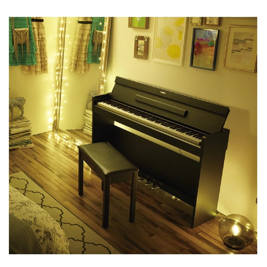 De YDP-S34 is dus niet alleen ontwikkeld als instrument, maar ook als meubelstuk. De piano heeft een prachtige zwarte kleur die niet te diep is, waardoor het niet meteen alle aandacht trekt. Daarnaast is de vorm van de piano erg modern. Het kleine formaat zorgt er ook voor dat het in de meeste ruimtes past. In combinatie met het subtiele en moderne uiterlijk, integreert de piano goed in zijn omgeving. Zodoende wordt de YDP-S34 onderdeel van uw interieur. Vanwege het formaat is het ook de ideale piano voor kleinere ruimtes, zoals bijvoorbeeld op een studentenkamer of in een appartement.