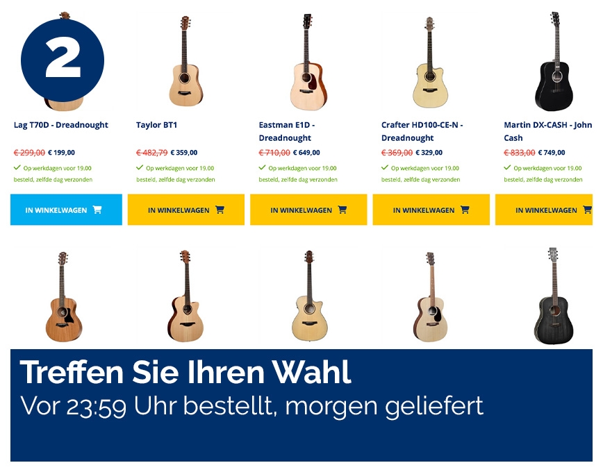 Willkommen in der Gitarrenabteilung von Joh.deHeer. Wir haben eine große Auswahl an Gitarren in verschiedenen Kategorien wie z.B. Konzertgitarren, Westerngitarren, E-Gitarren und Bassgitarren. Sie finden bei uns auch andere Saiteninstrumente wie Ukulelen und Zubehör wie Verstärker und Effektpedale.