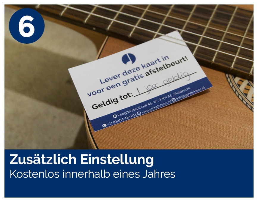 Bei Joh.deHeer haben wir auch eine umfangreiche Reparaturabteilung. Hier können Sie für alle Ihre Gitarrenbedürfnisse vorbeikommen, wir suchen gerne mit Ihnen nach der besten Lösung! Wir können Gitarren einstellen, intonieren, die Elektronik überprüfen, Vibrationen entfernen und natürlich auch Saiten ersetzen. Ist die Reparatur kompliziert? Dann schicken wir sie an unseren eigenen Gitarrentechniker weiter.