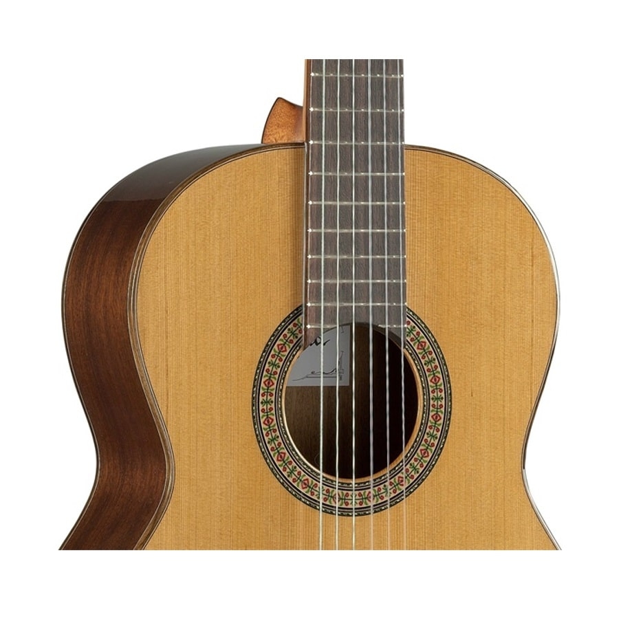 The 3C 7/8 is a great classical guitar from Alhambra. The model is ideal for beginners as it sounds amazing but is still relatively affordable. The 3C 7/8 has great tonal properties and has been meticulously built. This classical guitar has a solid cedar top and mahogany back and sides. Cedar provides the guitar with a beautiful and warm tone whereas the mahogany back and sides give the guitar a more powerful resonance. The guitar also has a mahogany neck and a rosewood fretboard. This is a great combination as it results in a comfortable playing surface.