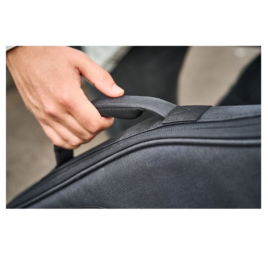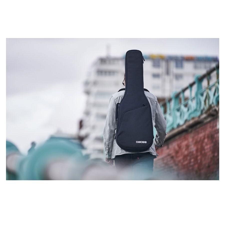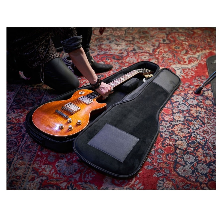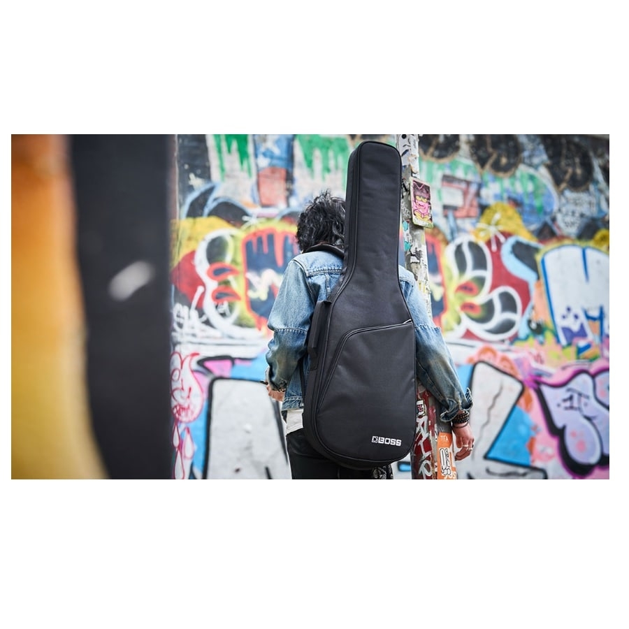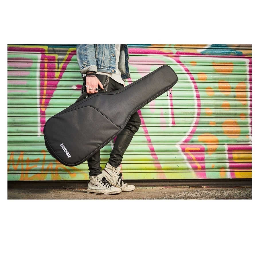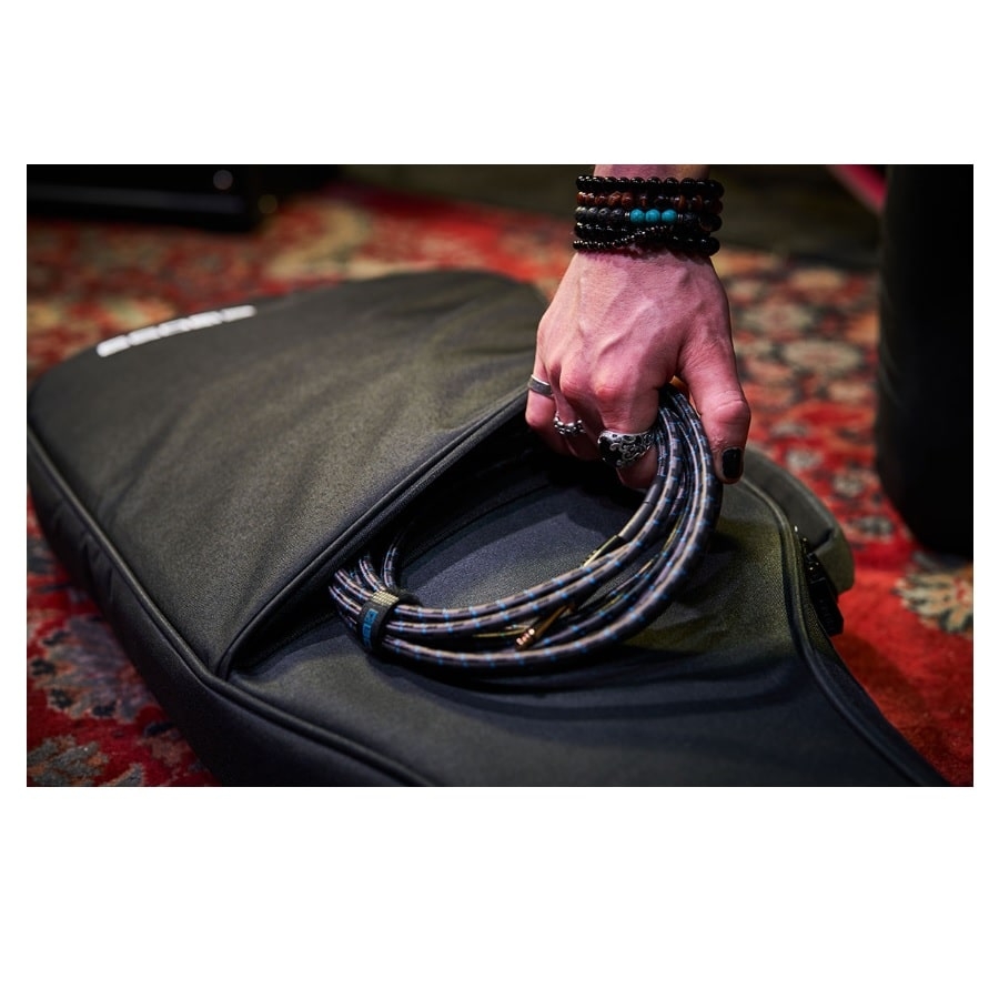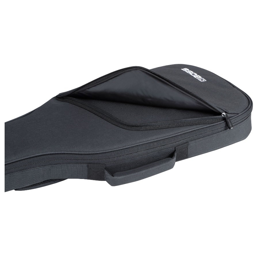 The CB-EG01 is a handy guitar bag by Boss. Boss is a Japanese company that produces high-quality guitar accessories. The bag is robust yet compact. The design is sleek, light, and thin. This, however, does not mean the bag doesn’t provide good protection: the outside of the bag is made of weatherproof polyester, proper padding, extra soft lining, and heavy duty zippers. Your guitar will thus stay properly protected in this bag. The bag is delivered with a removable neck support, so your guitar will not move around within the bag. The bag has a padded handle and two padded shoulder straps.