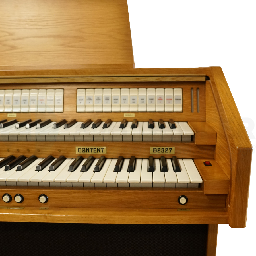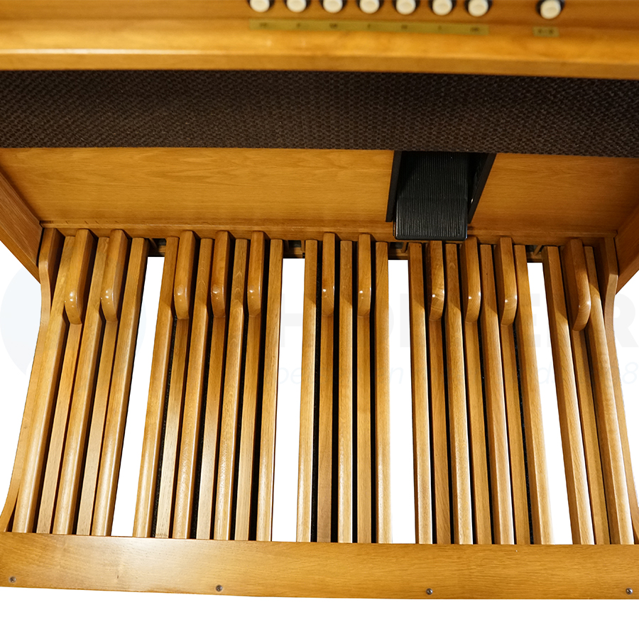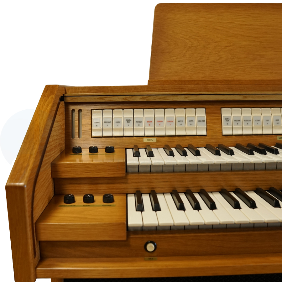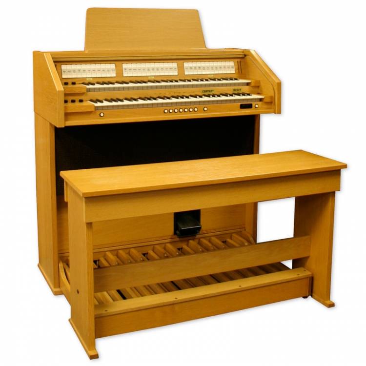 A compact organ with two manuals, no fewer than 29 stops and 27-tone slide-in pedal, the Content D2327 makes an ideal affordable study organ for your home. With its light patina colour and modest dimensions, this beautiful organ will surely match most interiors. The quality of this instrument is very high and this is reflected in its condition; the organ still looks really beautiful!