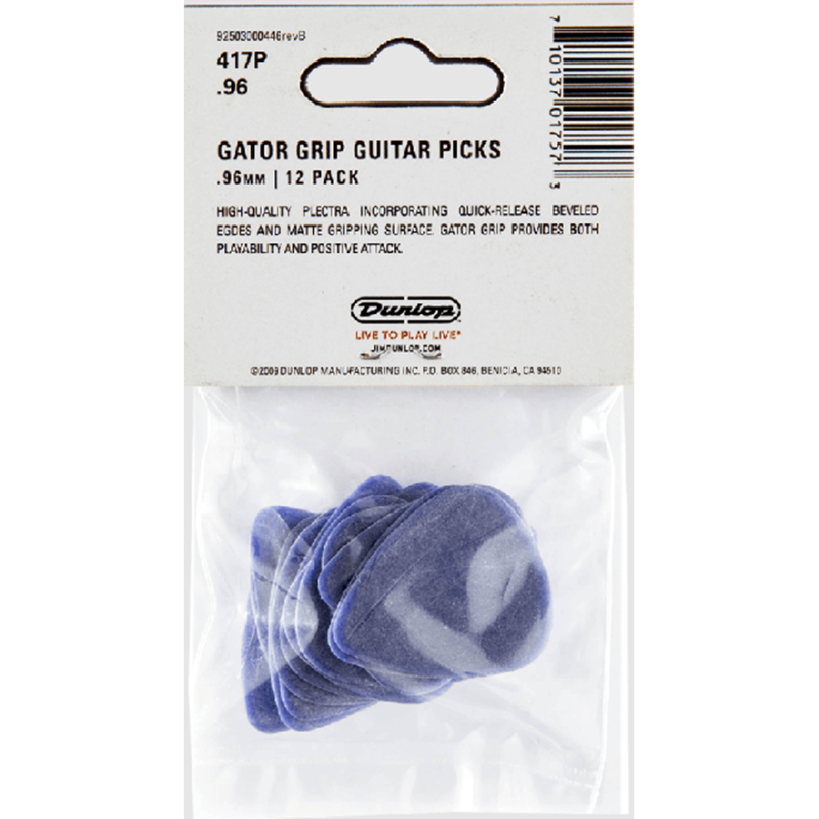 The Dunlop Gator Grip 0.96mm Navy Blue - 12-pack is part of the Gator Grip series and is known for its great grip and aggressive sound due to its rough and matte finish and beveled edge. This pick is ideal to use for dark and heavy guitar playing.