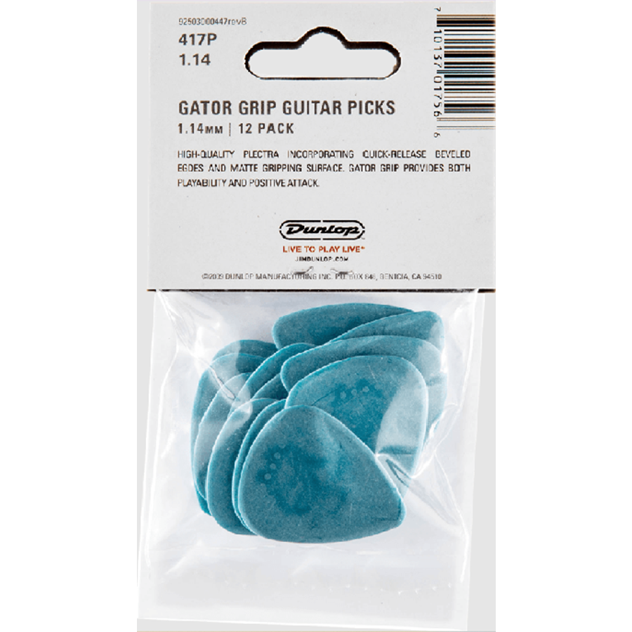 The Dunlop Gator Grip Blue 1.14mm is part of the Gator Grip series and, due to its rough and matte finish and beveled edge, is known for its good grip and aggressive sound. This pick is ideal to use for dark and heavy guitar playing.