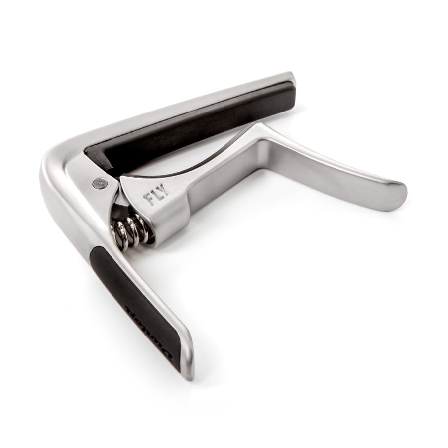 The Trigger Fly Capo is a great choice for every guitar player. This capo is only suitable for electric and western guitars. Western guitars and most electric guitars have a lightly curved fretboard, which means they require slightly curved capos. On the other hand, classical guitars have a flat fretboard, which means the capo also has to be flat. The Trigger Fly capo clamps with a low-tension feather, meaning that the capo will stay in place properly without clamping too tight.
