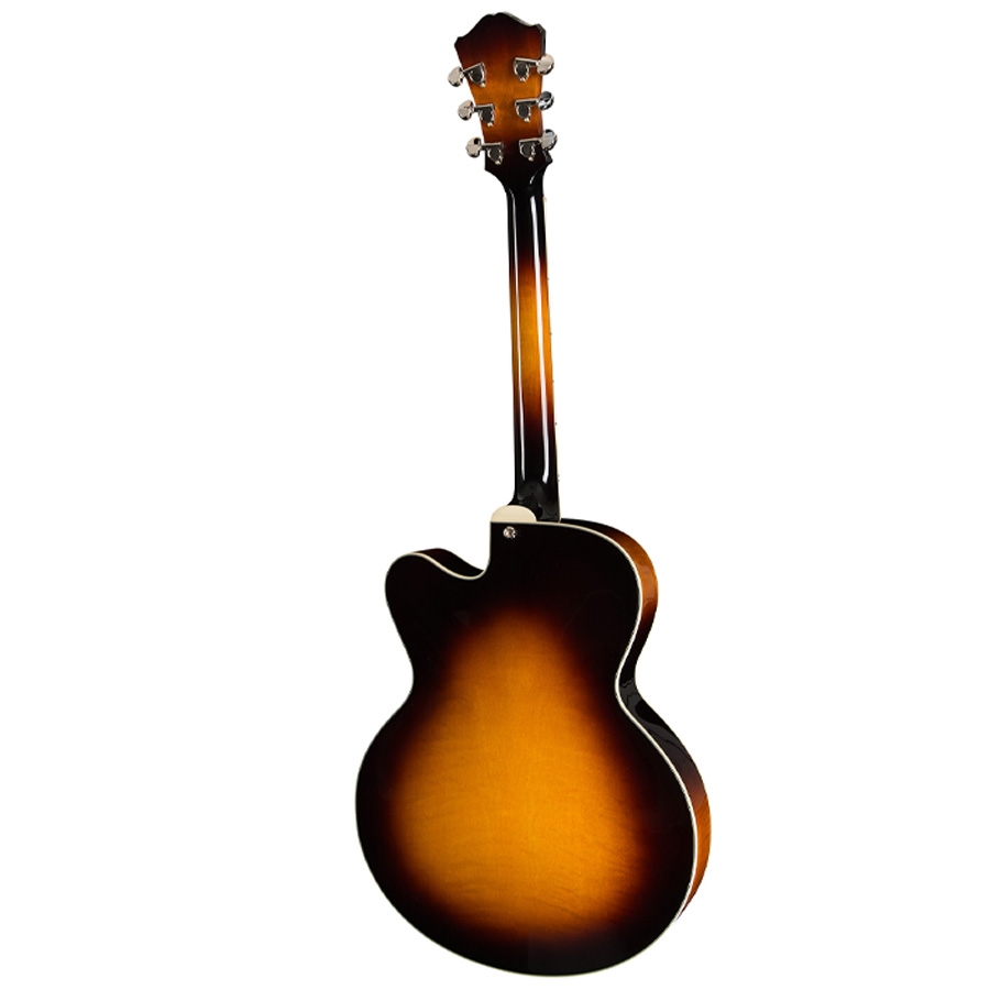 The AR503CE is also made of amazing materials. The guitar has a three-piece maple neck, which makes the neck quite sturdy and comfortable to play. The neck also has a traditional C-profile, which is generally considered to be the most comfortable and efficient neck shape. The body is made of laminated maple and has a solid spruce top, which means the guitar not only looks beautiful but has a warm sound and a loud projection. The guitar has a Seymour Duncan Seth Lover humbucker pickup. This is a high-quality pickup that is ideal for hollow-body guitars. This pickup produces a beautiful and articulated sound and has a great balance between warm and bright.
