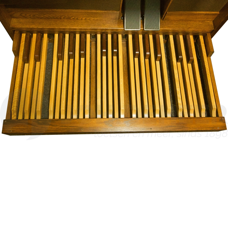 The Eminent Amadeus 100 is a classical organ manufactured by Lelystad-based organ builder Eminent. Eminent builds organs with the aim of replicating the sounds of a traditional pipe organ as closely as possible. This beautiful organ includes a 30-tone pedal, 31 stops, an extensive reverb system and setzer with display.