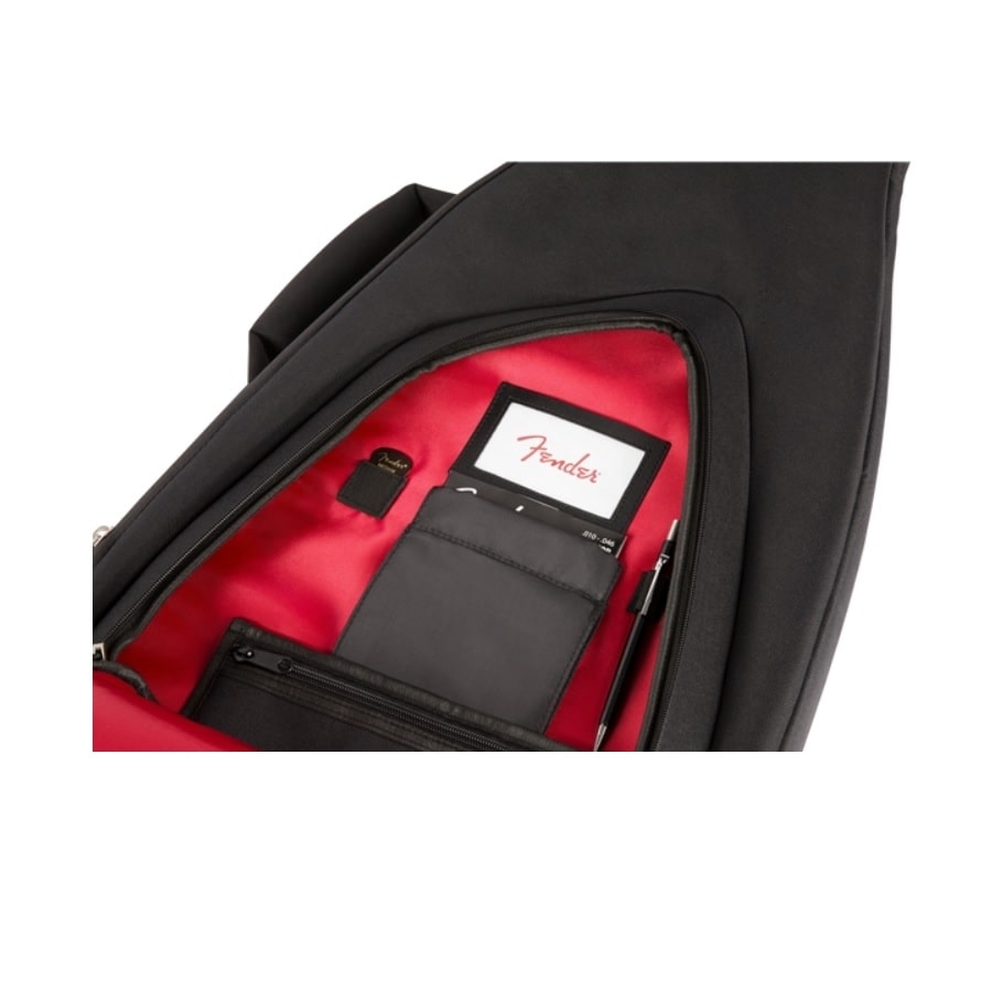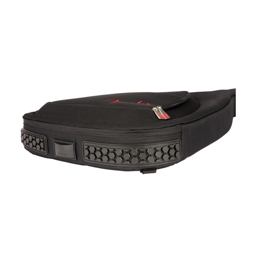 The FE620 is the perfect gigbag for electric guitars. The bag is specifically designed for Fender’s electric guitars, which is clear from the iconic shape of the headstock, although the bag can also be used for other types of electric guitars. The bag is also really sturdy. The outer layer is made of a thick polyester and the inner lining is made of microfiber. The polyester will prevent any damage to your instrument when you bump the bag against something or when you’re walking through the rain, whereas the microfiber lining protects the lacquer of your guitar, so that the lacquer will not get scratched inside the bag. The bag has two shoulder straps at the bag and a handle on the side. The straps are also lined and contain ergonomic mesh, which makes sure the straps will lay comfortably on your shoulders and the fabric will still be able to breathe. The FE620 is thus a high-quality and incredibly safe gigbag!