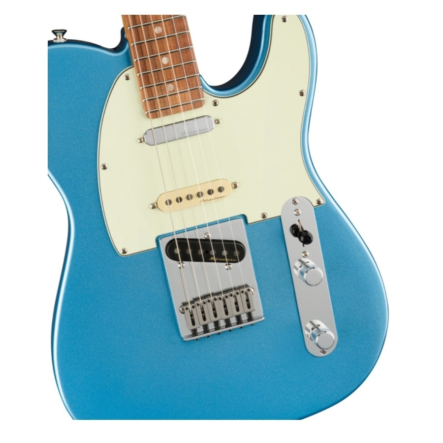 The Player Plus Nashville in Opal Spark is a creative version of the legendary Telecaster. This Telecaster does indeed contain the typical Telecaster sound, like that beautiful warm twangy sound, but it also has a Stratocaster function. The tone knob has a push/pull system with which you can easily transform your Telecaster into a Stratocaster. Consequently this means you will have two guitars in one! Furthermore, all pickups have a no-hum system. Single-coil pickups are notorious for their humming sound. This is because single-coils do not have a magnetic circle which means they can pick up other signals. Fender wasn’t satisfied with this, so they developed no-hum single-coils, which are single-coil pickups that do not hum when they are being used, even with a lot of distortion and/or overdrive. Additionally, the guitar itself is also made of high quality materials. The guitar has an alder body and a maple neck. Alder is light yet strong and maple is insanely comfortable to play and has a classic look. This is complemented by the Opal Spark finish, which also gives the guitar a vintage appearance. The Fender Player Plus Nashville Telecaster is thus the ideal Telecaster for the versatile guitarist!