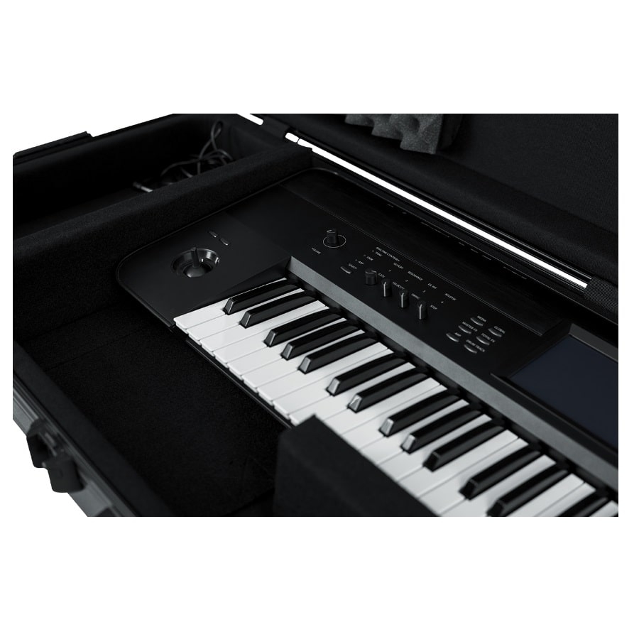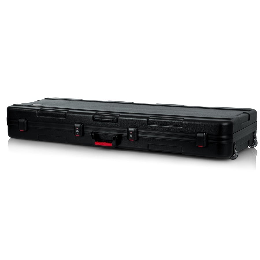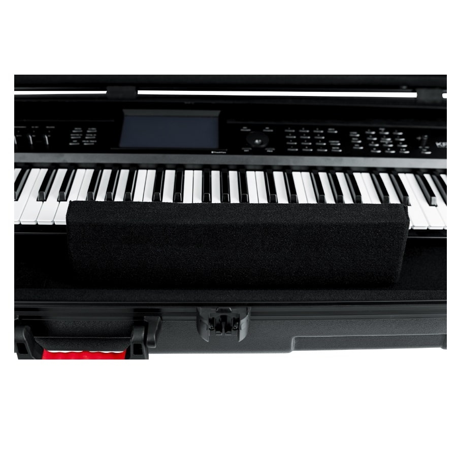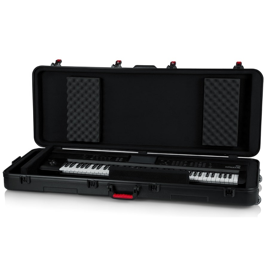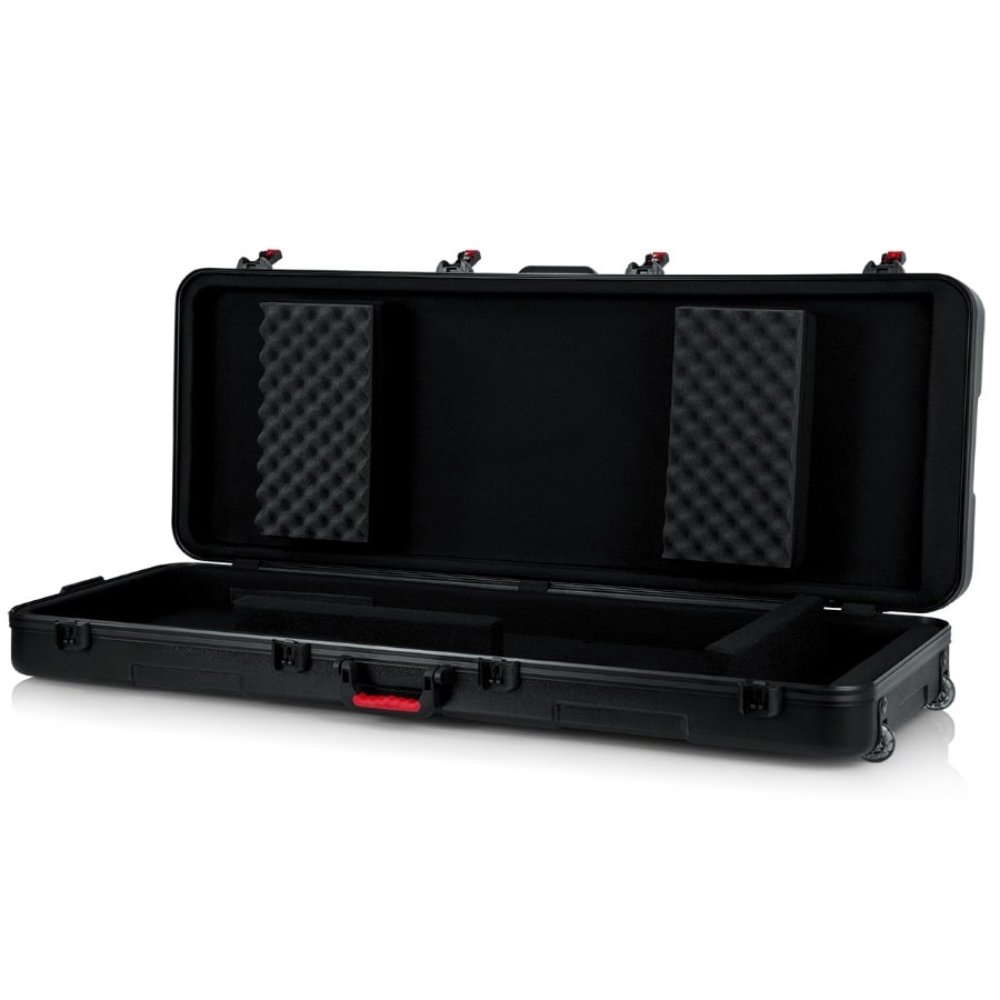 The GTSA-KEY76 is a great case from Gator for keyboards with 76 keys. Make sure to double-check the dimensions of your keyboard and compare it to the dimensions of the case. The internal dimensions of the case are 130,81 x 45,72 x 13,97 centimetres. The case is made of polyethylene plastic which is nearly indestructible. The inside has soft padding and movable blocks to properly protect your keyboard inside the case. This is important, because if the keyboard can shift it can get damaged inside the case. The case has two wheels that can carry up to 90 kilos. Furthermore, the case has an ergo-grip handle at the side and at the top. Do you plan to travel with your keyboard? That won’t be a problem, as the case has two sturdy locks that are accepted by the American TSA and thus will be accepted by most customs.