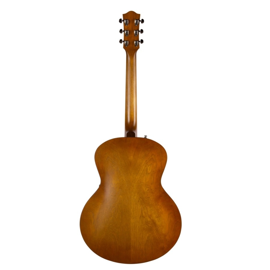 This guitar is a hollow-body guitar. This means that the guitar is a combination of an acoustic and an electric guitar. A hollow body has both a hollow body as well as pickups and knobs. The vibration of the string resonates in the body and on the hollow wood, after which the resonance is caught by the pickups. This results in a beautiful and unique sound; hollow body guitars have a full and bright sound. This is different from a semi-acoustic guitar, as that’s simply an acoustic guitar with an acoustic pickup, meaning the sound is solely acoustic. Due to the pickups on hollow-body guitars, many different types of sound are possible. Consequently, they are also ideal for solos and riffs. Furthermore, the sound holes on hollow-body guitars are usually on the sides instead of in the middle, which means the resonance will sound different as well.