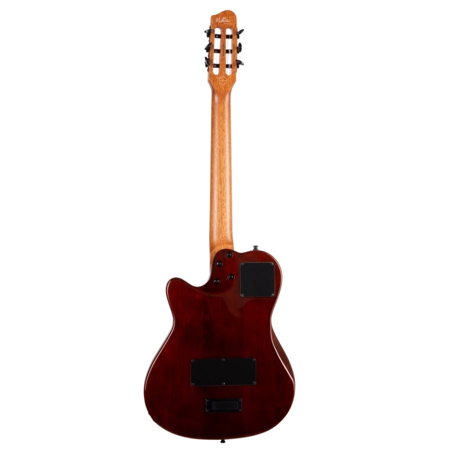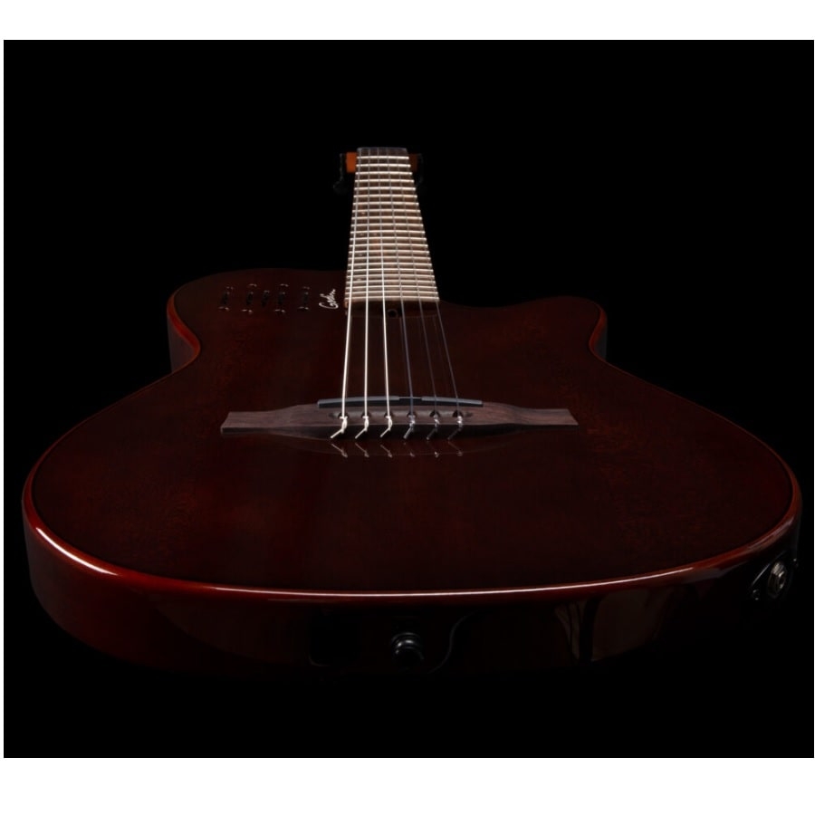 Because resonance plays such an important part with the MultiAc, it is thus important to consider the materials of which the guitar is made. The body is made of Silver Leaf maple, which is a Canadian type of maple. It has great projection and a bright sound. The neck is made of cedar and has a rosewood fretboard. This is a great combination!