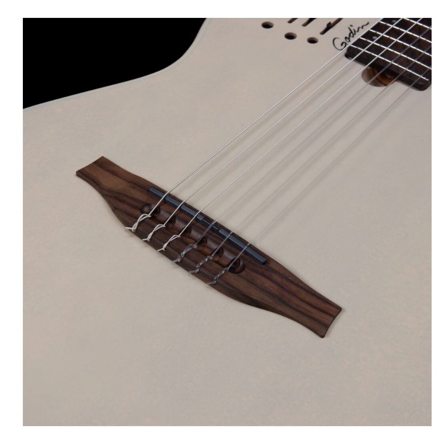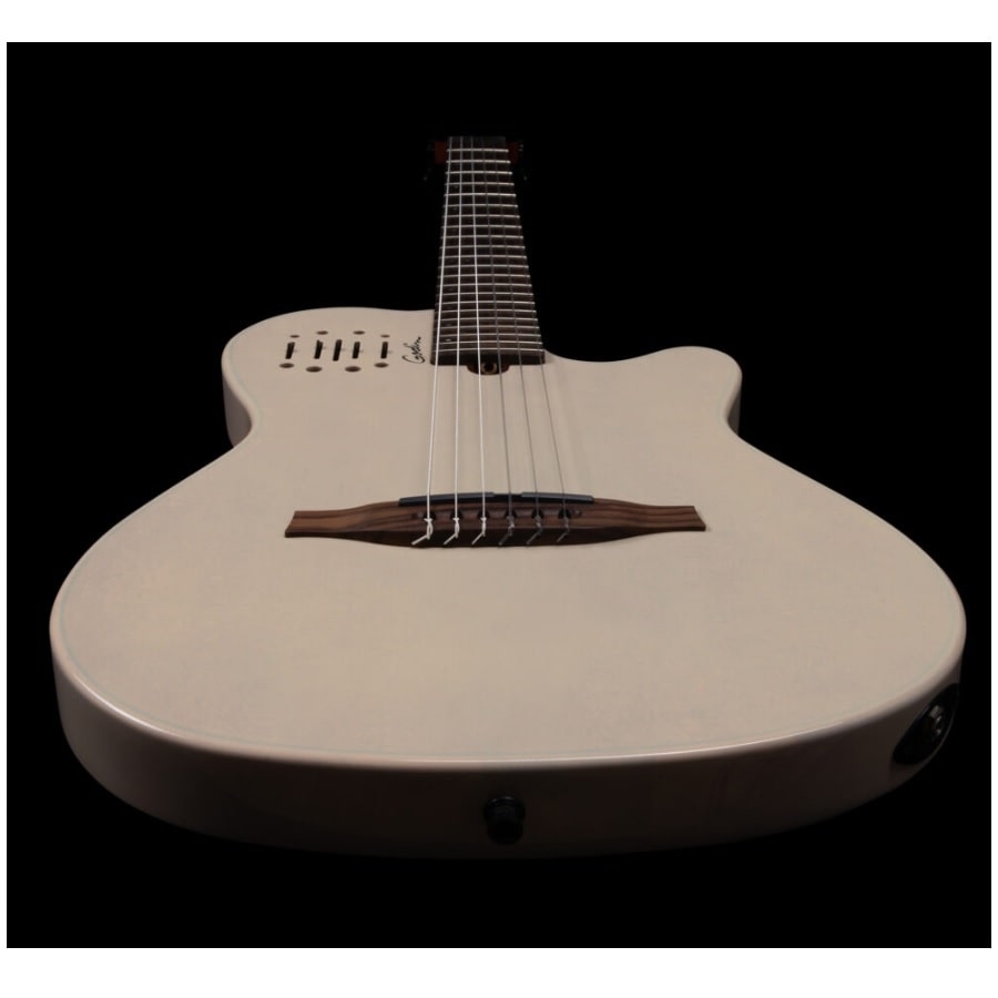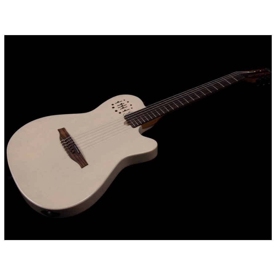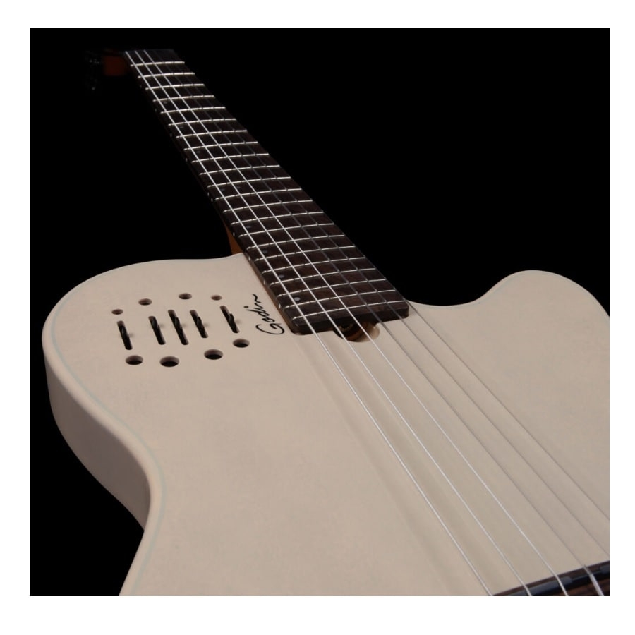 Because resonance plays such an important part with the MultiAc, it is thus important to consider the materials of which the guitar is made. The body is made of Silver Leaf maple, which is a Canadian type of maple. It has great projection and a bright sound. The neck is made of cedar and has a rosewood fretboard. This is a great combination!
