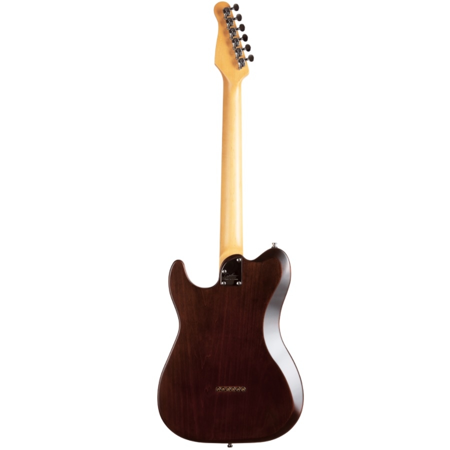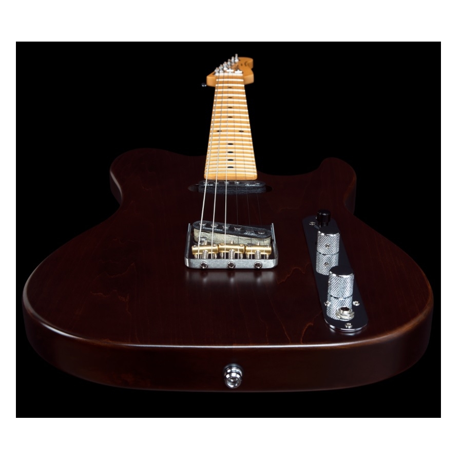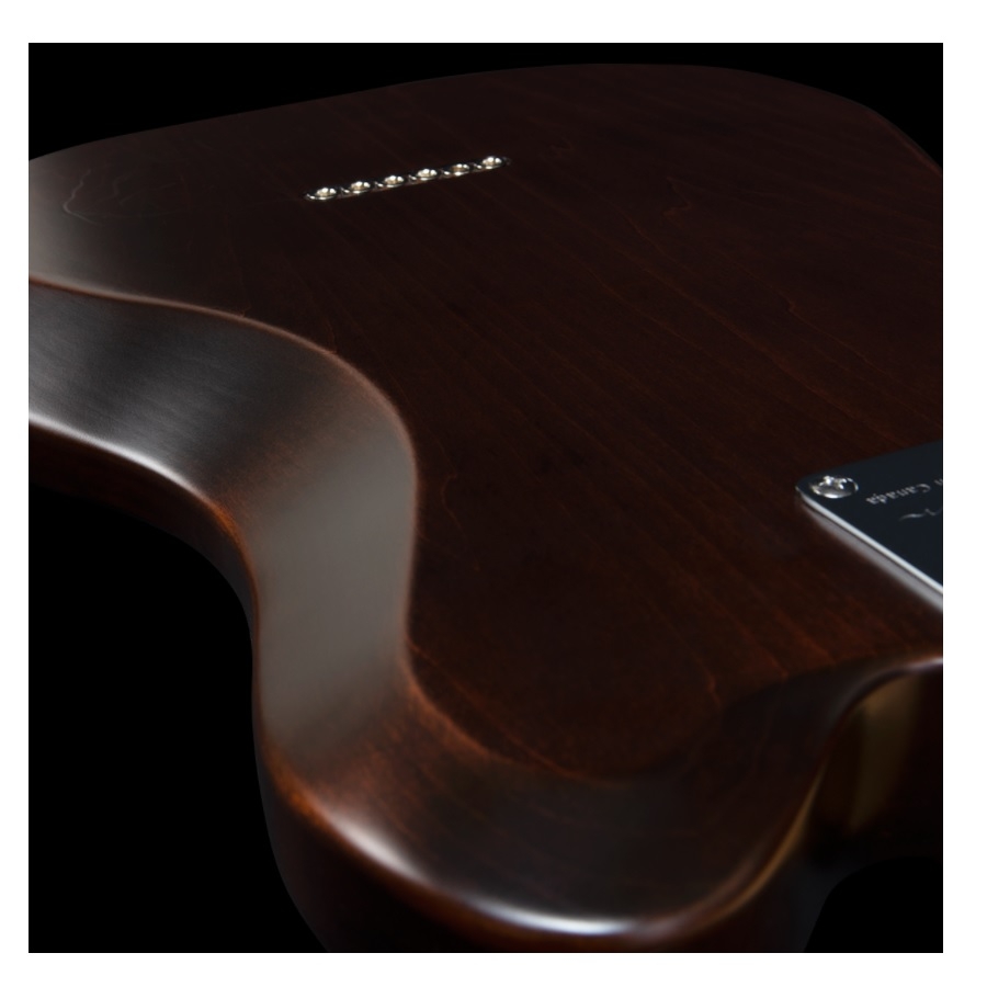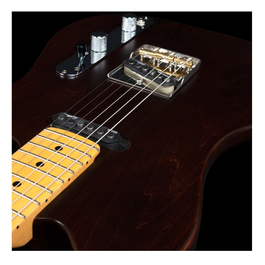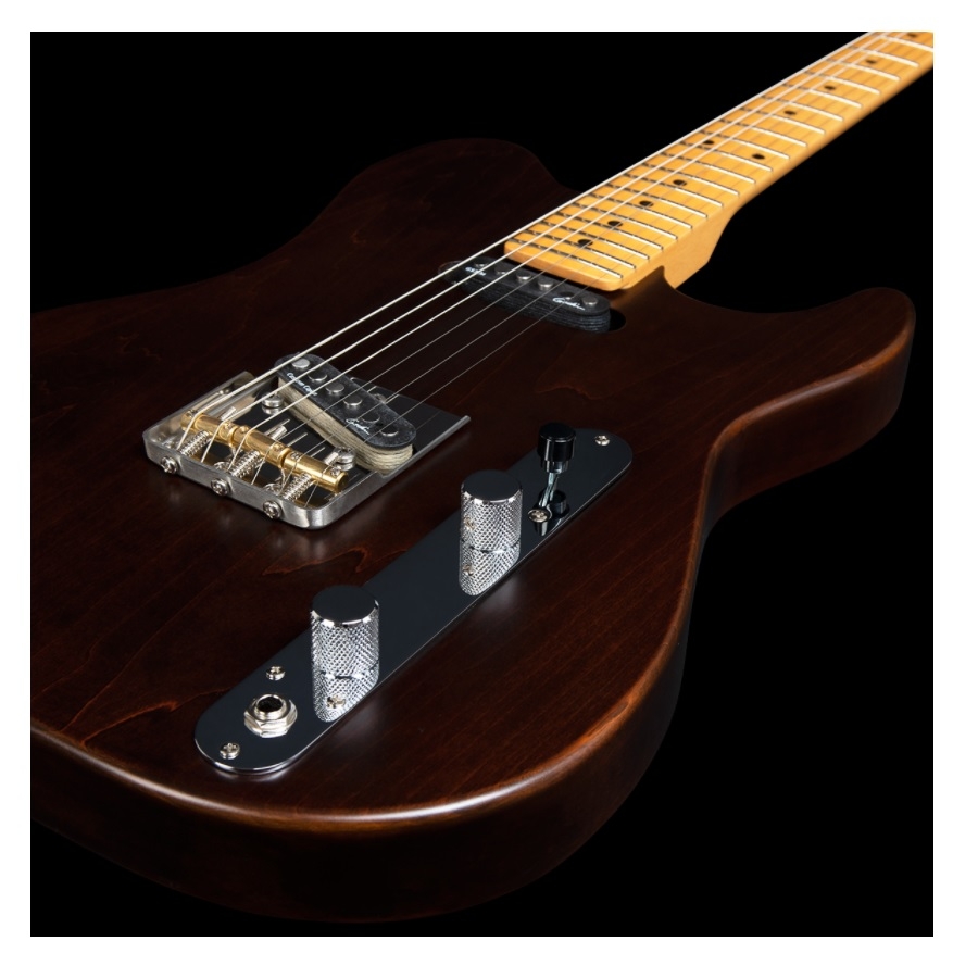 The Stadium HT Havana Brown is a solid body guitar by Godin. The shape is based on the legendary Telecaster, although the Stadium is a little rounder. The guitar has two single-coil pickups, of which one is located in the metal of the bridge. The metal gives a different resonance which adds a lot of twang to the pickup. The neck pickup articulates quite well and has a vintage tone. The hardware is also of high quality. The saddles are even made of brass, which gives the guitar a warmer sound.
