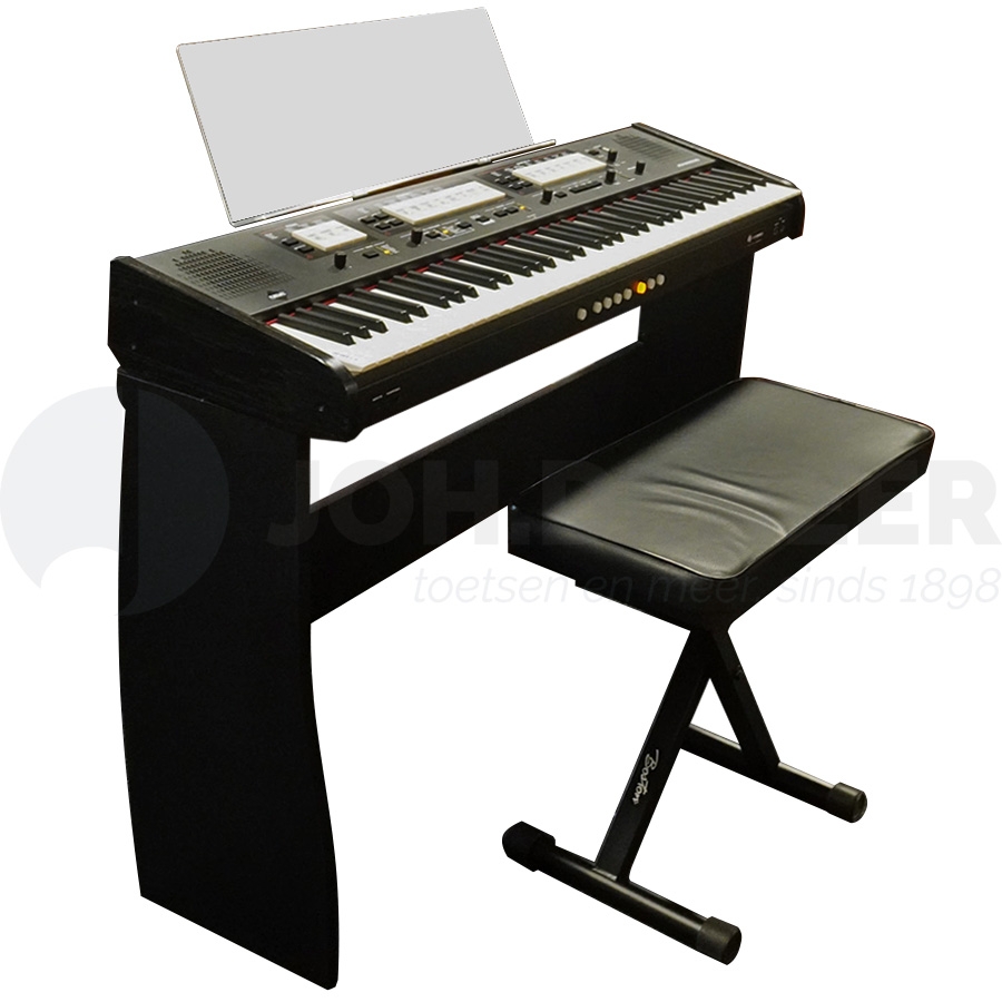 There are many accessories available for the Johannus One. The keyboard can be placed on various stands, such as a Roland cross stand or a Roland Z stand. Optional pedals can be connected to the back of the One, such as an EV-5 volume pedal or a DP-10 sustain pedal for piano playing. If you want to play quietly for the environment, you can do this with headphones. We recommend using headphones such as the Roland RH-5 or RH-200.