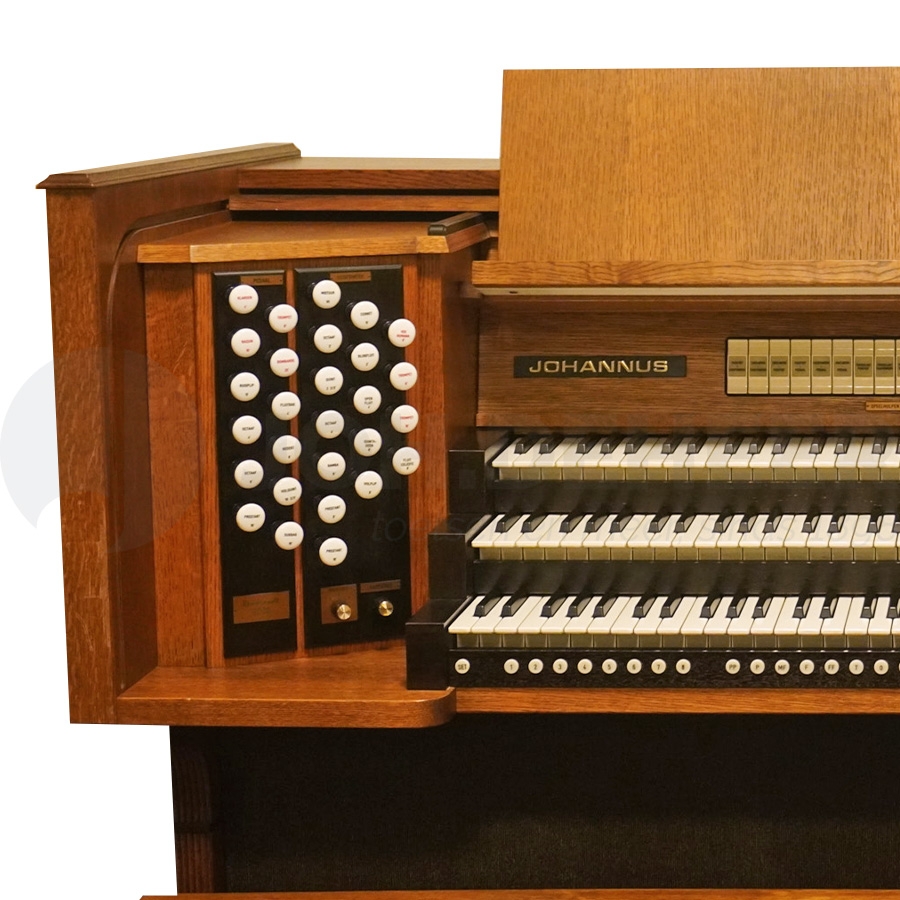 Johannus Rembrandt 3000 used organ in very good condition. This organ is equipped with a radial concave pedal and an adjustable organ bench.