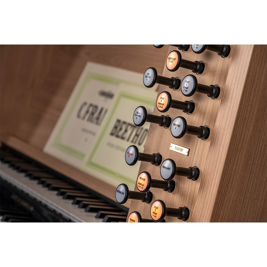 The Studio P360 has a wide range of registers, including beautiful solo voices such as trumpet and pan flute. These solo voices can be used alone or combined with other registers depending on your musical goals and tastes and are intended to add extra expressiveness and variety to your organ playing.