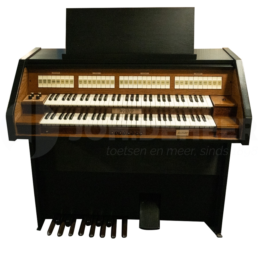 The Johannus Wesley Allegro is a digital organ with two manuals, both equipped with 61 keys. The pedal is 13-tone. The Wesley Allegro has disposition for the Headwork, Swell and Pedal plus a number of handy playing aids. The playing aids include pairs for swell/main work and main movement/pedal plus Intonation, Chorus, Tremulant and Manual Bass. With this Wesley Allegro you get a real Johannus at an affordable price.