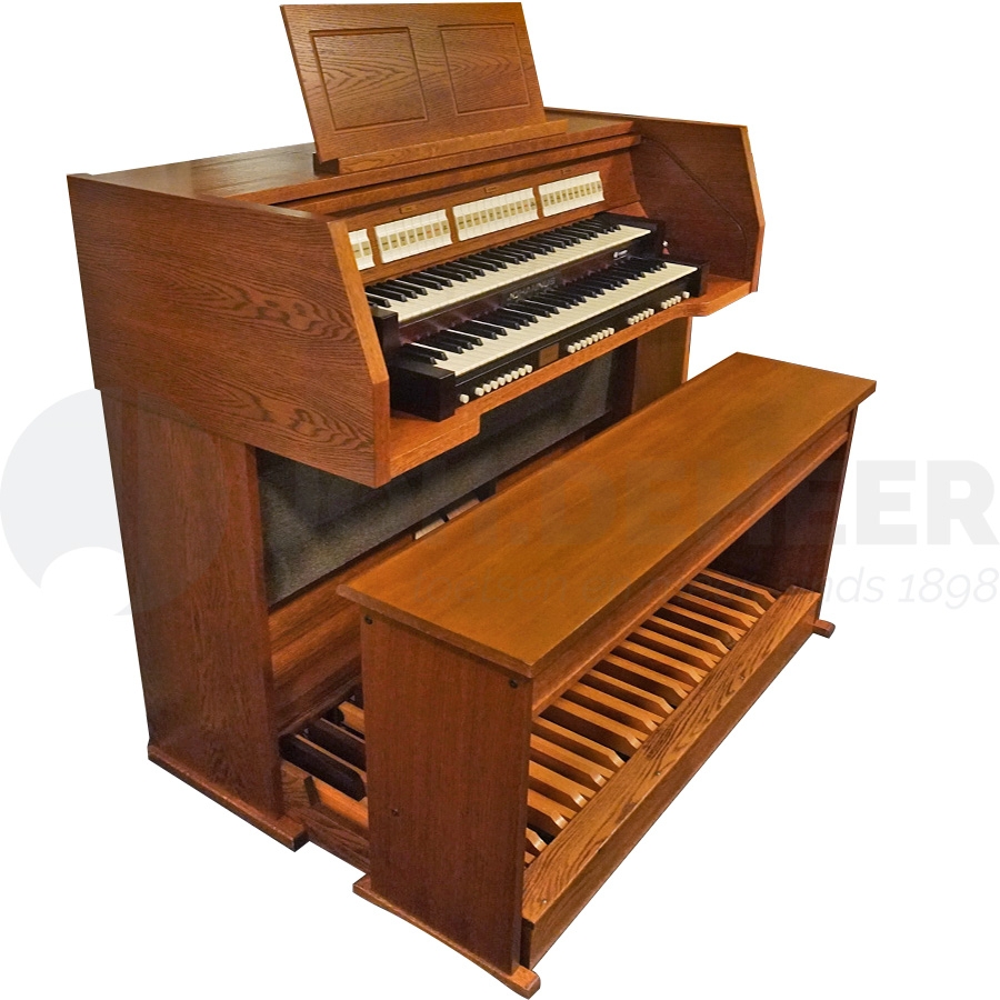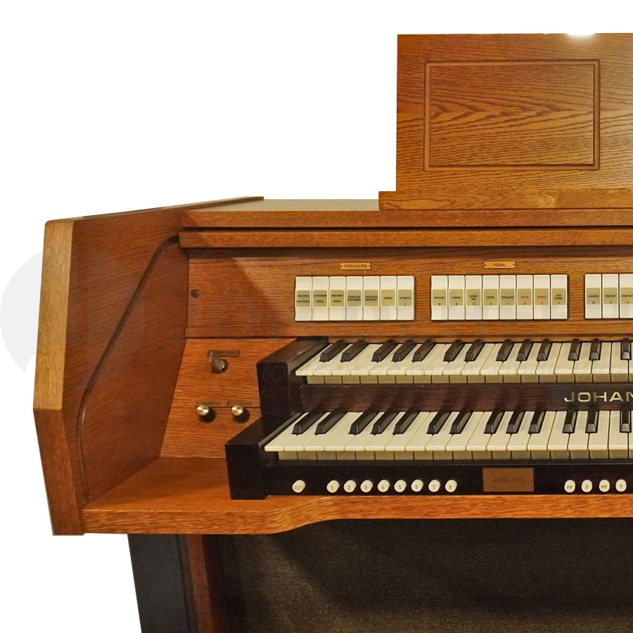 The Johannus Wesley Jubilate is an organ from the renowned Johannus collection. Characterised by its broad round sound, it is a perfect study instrument. The organ has an extensive disposition of 26 stops with a choice of Dutch romantic or baroque. The dark oak cabinet with roller shutter is still in good condition. The organ is equipped with a 27-note pedal and wooden swell pedals, giving it an elegant appearance. In short, this digital organ is a piece of furniture that is guaranteed to provide many years of playing pleasure.