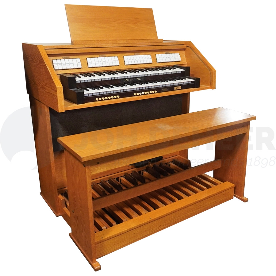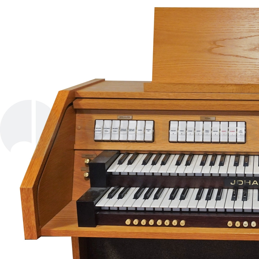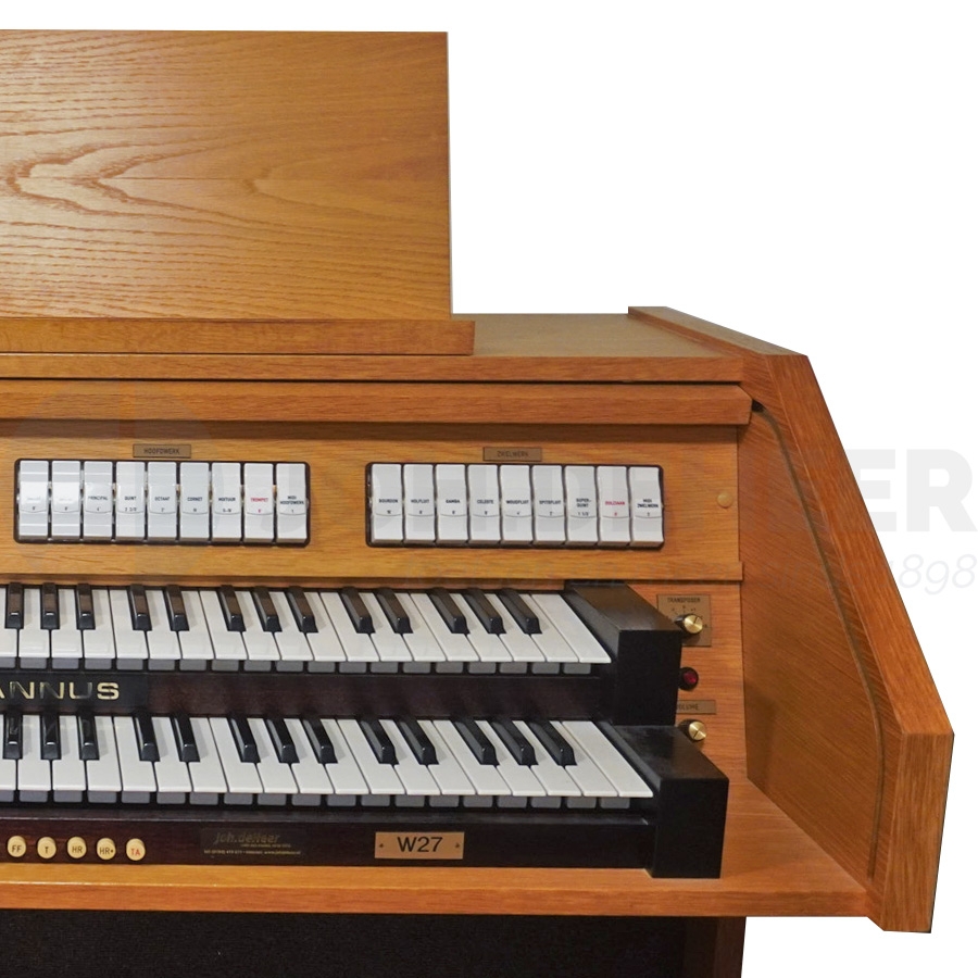 The Johannus Wesley W27 is an organ from the renowned Johannus collection. Characterised by its broad round sound a perfect study instrument. The organ has an extensive disposition of 24 stops. The dark oak case with roller shutter is still in good condition, giving the organ a relatively modern appearance.