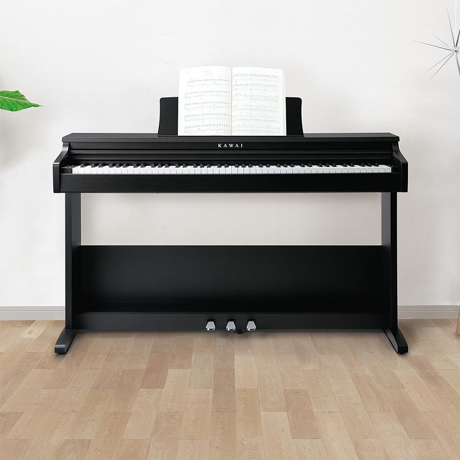 The Kawai KDP-75 is a fairly simple piano with few extra sounds or options. Yet it basically looks suspiciously like its more expensive brothers. For this entry-level price you get the beautiful Responsive Hammer Compact action keyboard. This compact plastic keyboard plays comfortably and has quite a lot of expressiveness with real hammers. Combine this with the beautiful Kawai SK-EX grand piano sound, and you have a beautiful piano playing and listening experience! Of course, Kawai has also added other sounds such as an upright piano, strings and electric piano sounds.
