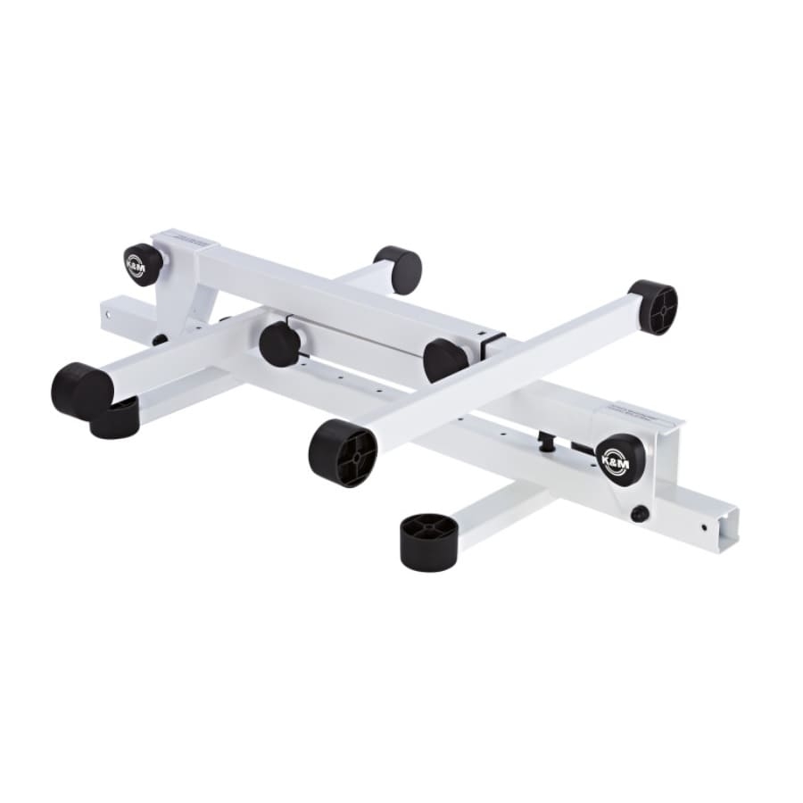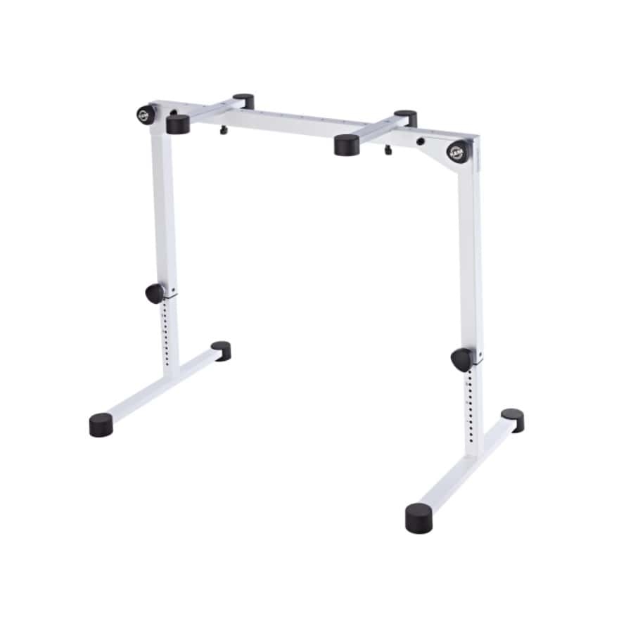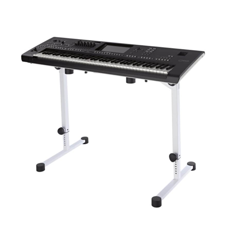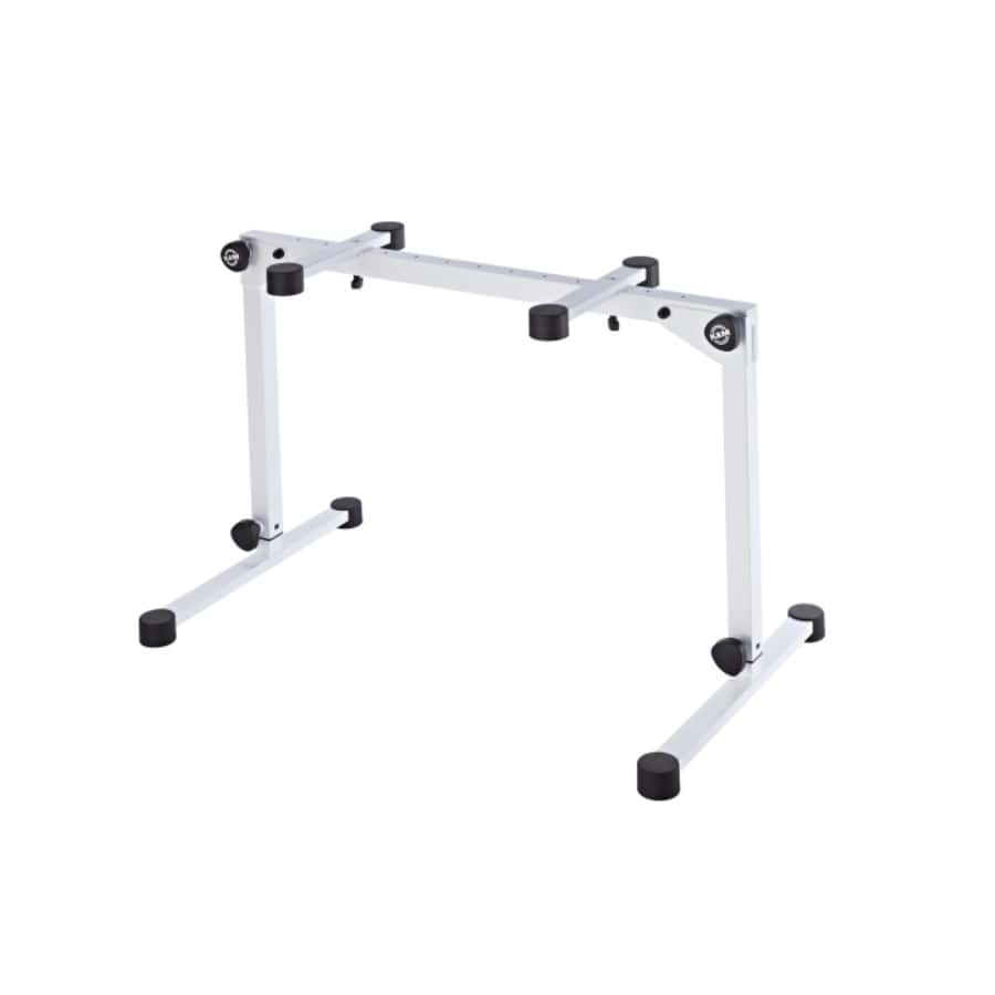 The 18820 Omega Pro is a great keyboard stand by Konig & Meyer. It’s a compact stand which is made of steel pipes. Furthermore, the stand has two horizontal feet to make sure it will stand sturdy. Underneath the four feet there are floor protectors, so your floor won’t get damaged and the stand will not shift. The arms on either side can be adjusted so your keyboard will fit properly.